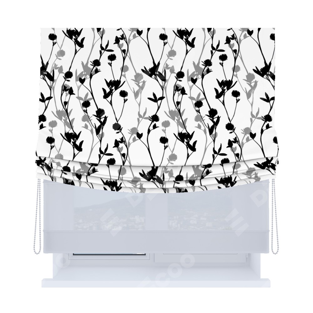 Римская штора «Кортин», день-ночь с мягкими складками, «Цветочный силуэт»