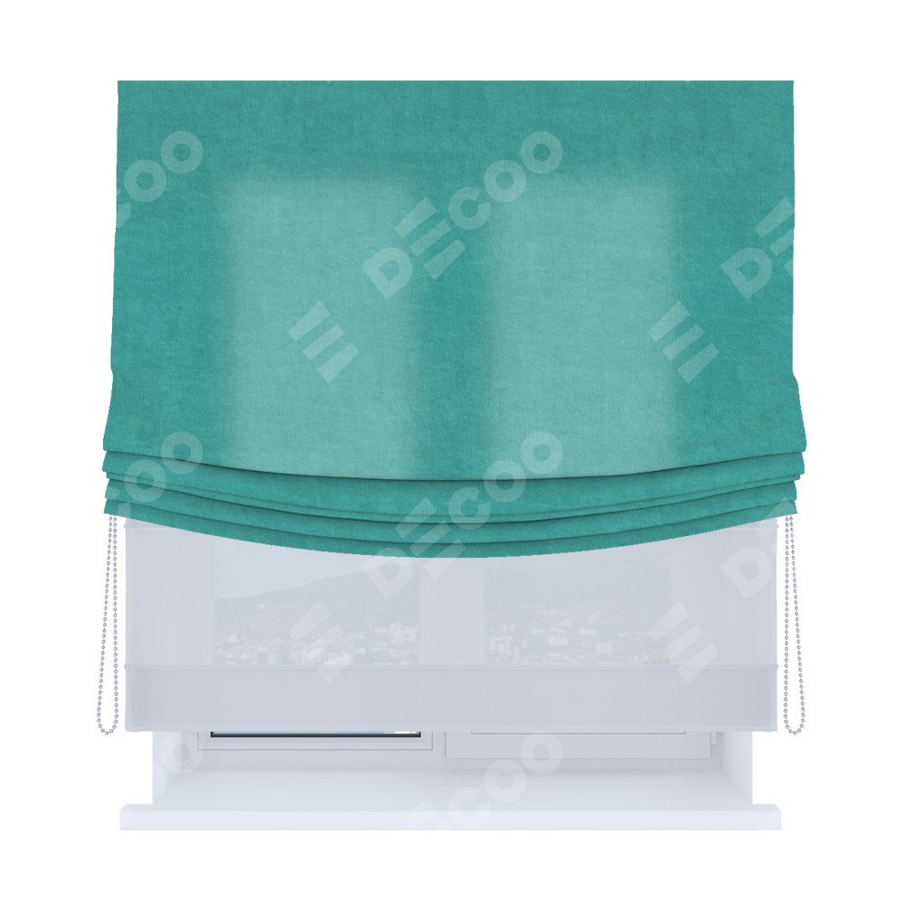 Римская штора «Кортин», канвас бирюзовый, день-ночь с мягкими складками