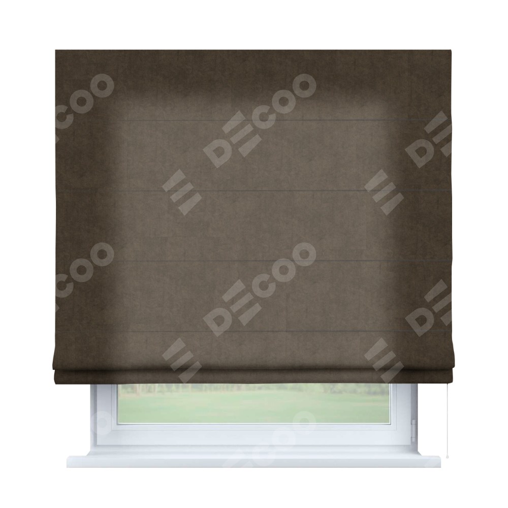 Римская штора производителя «Cortin», используется для проёма, пошита из ткани канвас коричневый, артикул ткани v-29. Имеет универсальный механизм и подходит для монтажа: на потолок, на стену и в нишу.