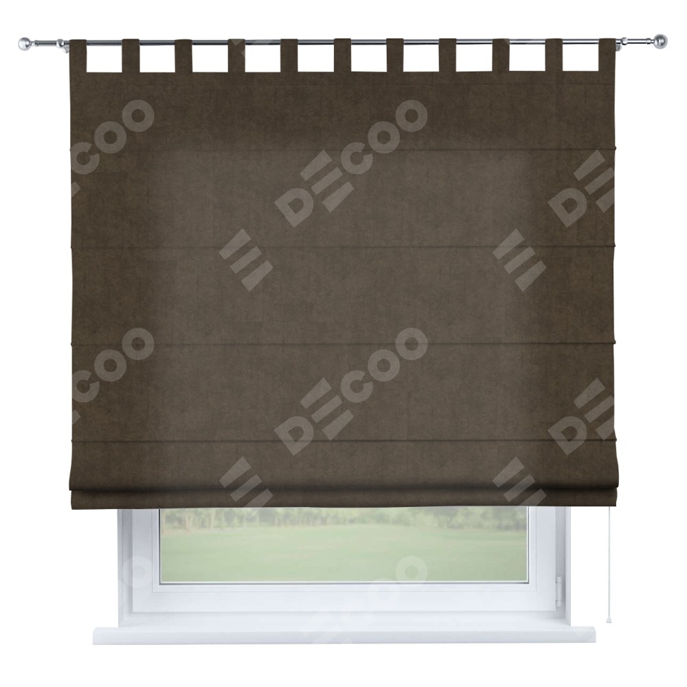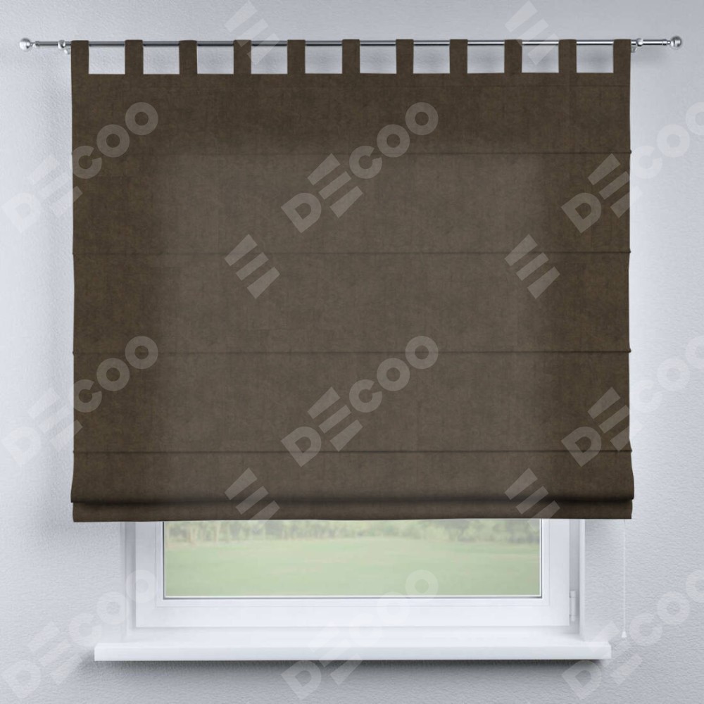 Римская штора производителя «Cortin», используется для проёма, пошита из ткани канвас коричневый, артикул ткани v-29. Данная модель пошита на петлях, комплектуется на выбор круглым карнизом и подходит для монтажа на стену. Римская штора на петлях имеет простую систему регулировки высоты, отличительным преимуществом данной модели является простой способ монтажа. Достаточно повесить ее на трубу и штора готова!