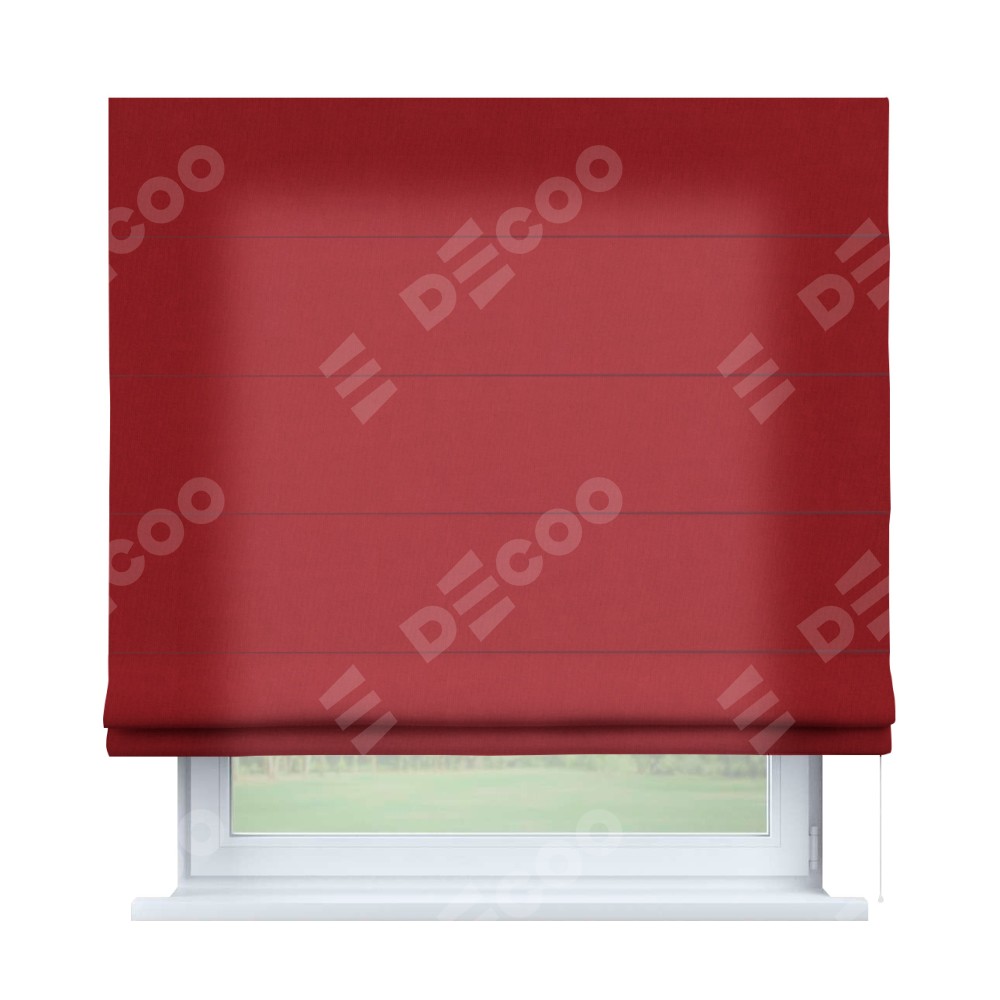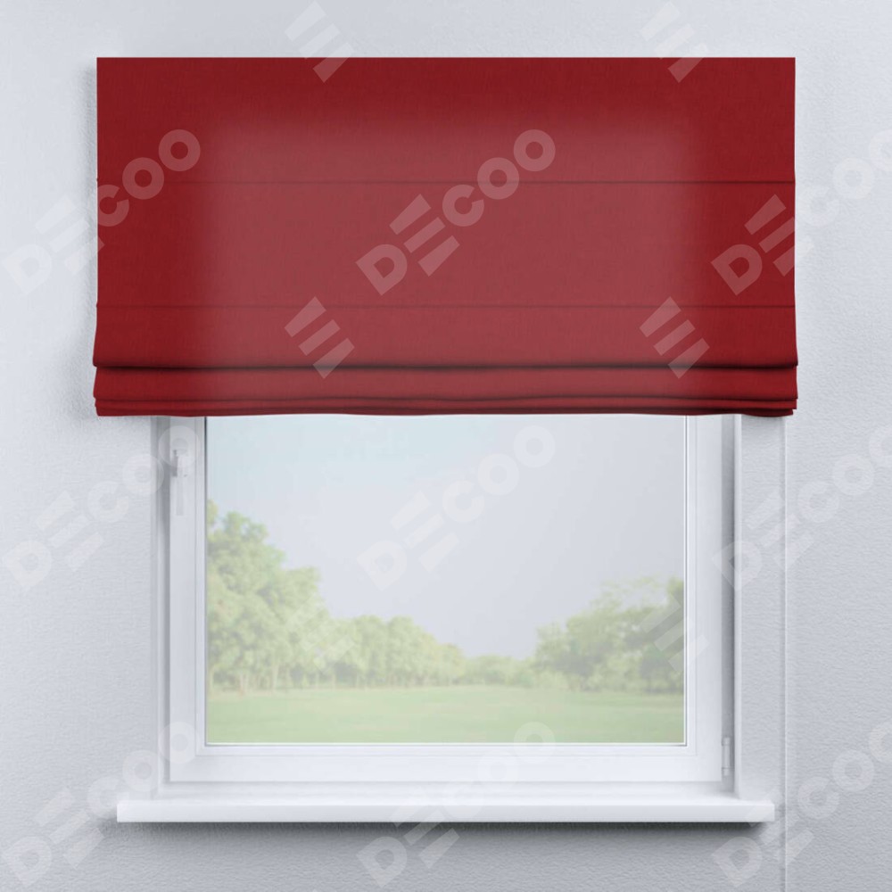 Римская штора производителя «Cortin», используется для проёма, пошита из ткани канвас красный, артикул ткани v-113. Имеет универсальный механизм и подходит для монтажа: на потолок, на стену и в нишу.