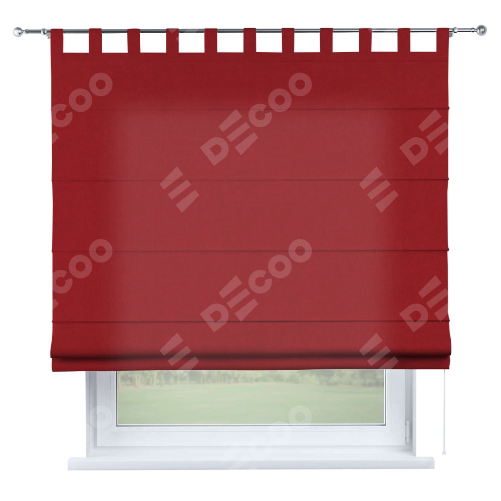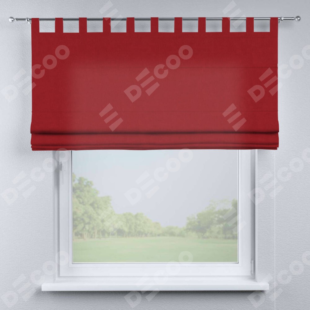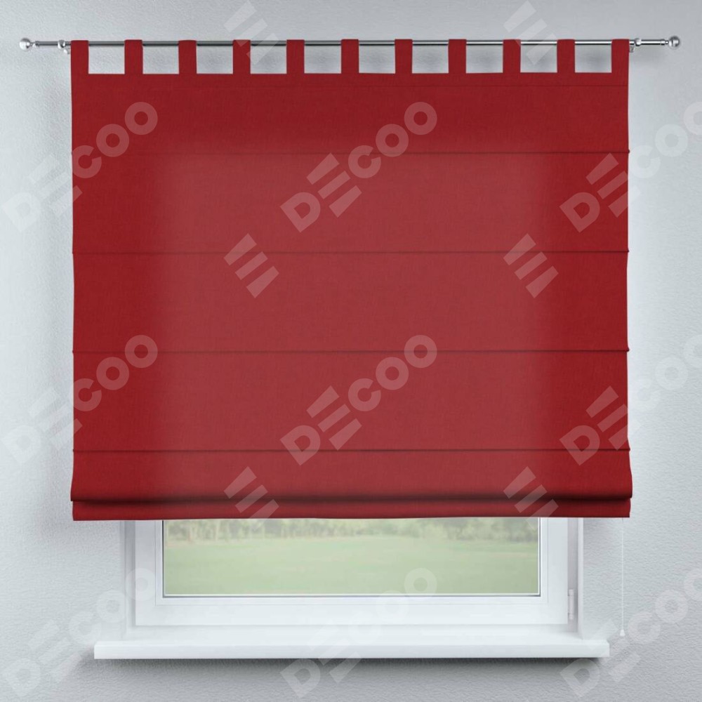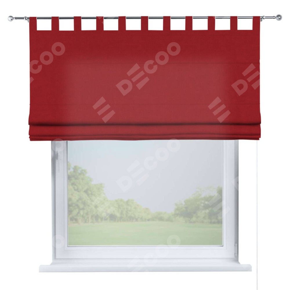 Римская штора производителя «Cortin», используется для проёма, пошита из ткани канвас красный, артикул ткани v-113. Данная модель пошита на петлях, комплектуется на выбор круглым карнизом и подходит для монтажа на стену. Римская штора на петлях имеет простую систему регулировки высоты, отличительным преимуществом данной модели является простой способ монтажа. Достаточно повесить ее на трубу и штора готова!
