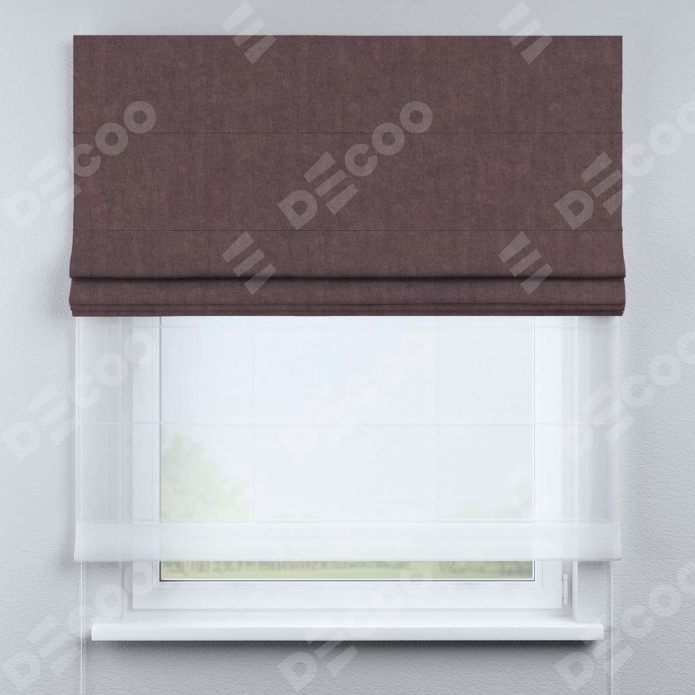 Римская штора день-ночь производителя «Cortin», используется для проёма, пошита из двух полотен, с лицевой стороны канвас махагон артикул v-37, вторая ткань тюль (по стандарту комплектуется тюль белого цвета артикул V-01). Имеет универсальный механизм и подходит для монтажа: на потолок, на стену и в нишу.