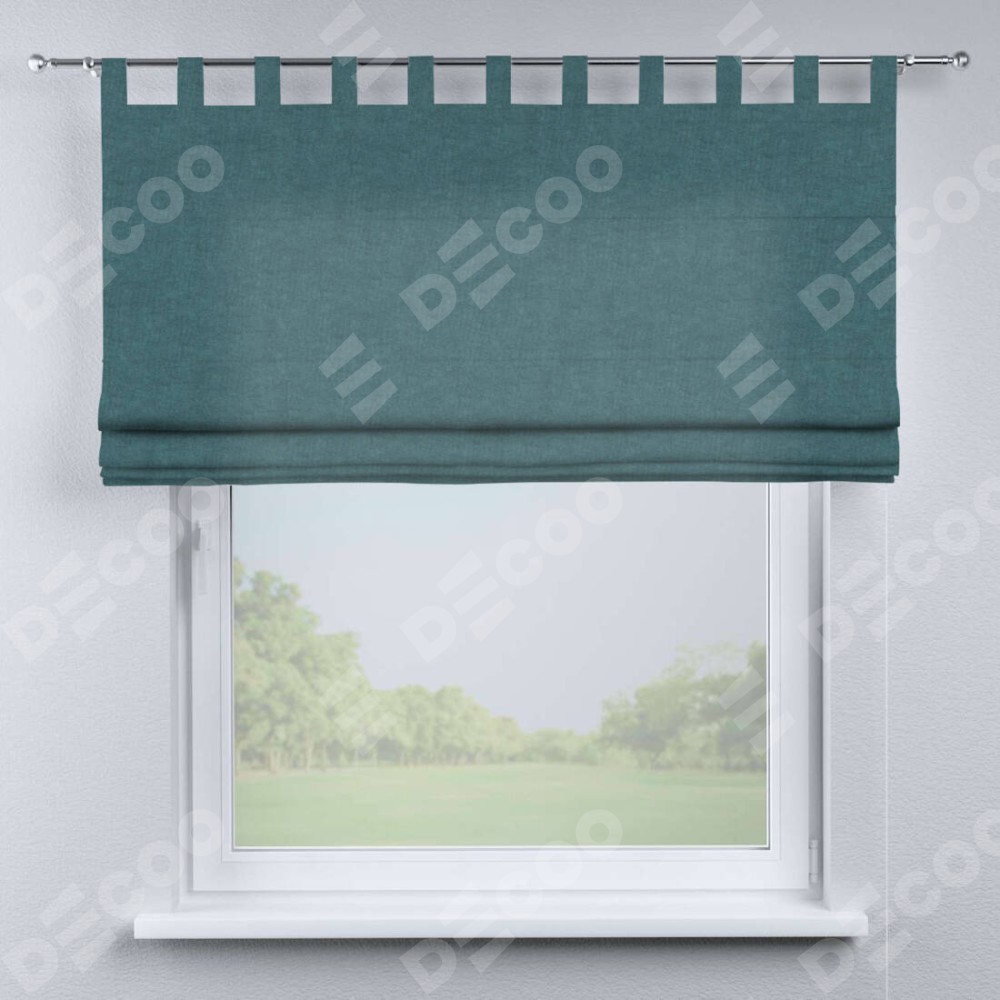Римская штора производителя «Cortin», используется для проёма, пошита из ткани канвас ментоловый, артикул ткани v-114. Данная модель пошита на петлях, комплектуется на выбор круглым карнизом и подходит для монтажа на стену. Римская штора на петлях имеет простую систему регулировки высоты, отличительным преимуществом данной модели является простой способ монтажа. Достаточно повесить ее на трубу и штора готова!