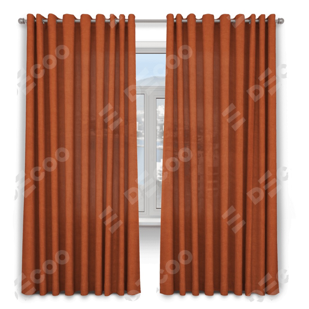 Комплект прямых штор, от производителя «Cortin», пошиты из ткани вельвет терракотовый, артикул ткани 85548. Данная модель пошита на люверсах, комплектуется на выбор круглым карнизом и подходит для монтажа на стену. Прямые шторы на люверсах шьются по стандарту с коэффициентом 1/2 (на 100 см. ширины проёма 200 см. ширины ткани), отличительным преимуществом данной модели является простой способ монтажа. Достаточно повесить ее на трубу и штора готова!