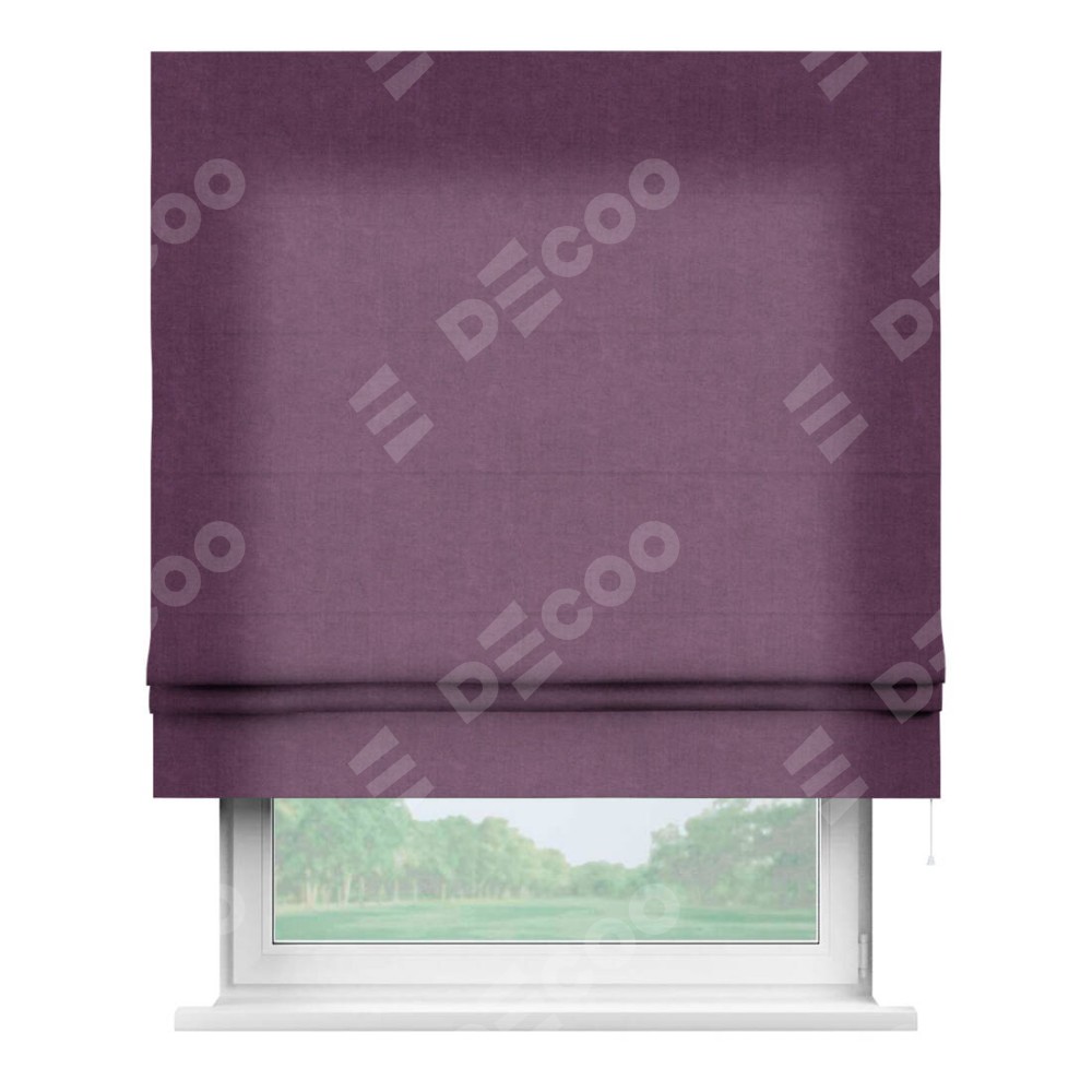 Римская штора производителя «Cortin», используется для проёма, пошита из ткани канвас сиреневый, артикул ткани v-98. Имеет универсальный механизм и подходит для монтажа: на потолок, на стену и в нишу.