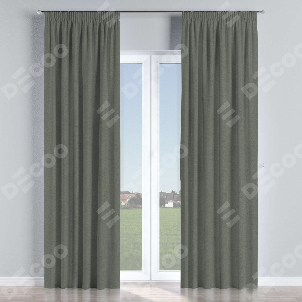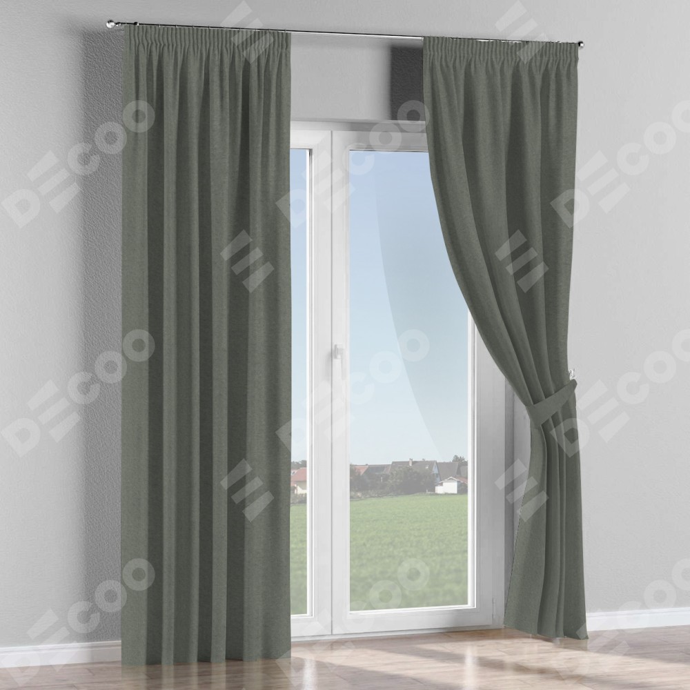 Комплект штор лён димаут тёмно-серый, на тесьме «Карандаш»