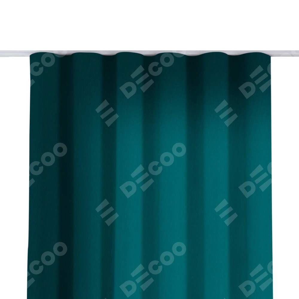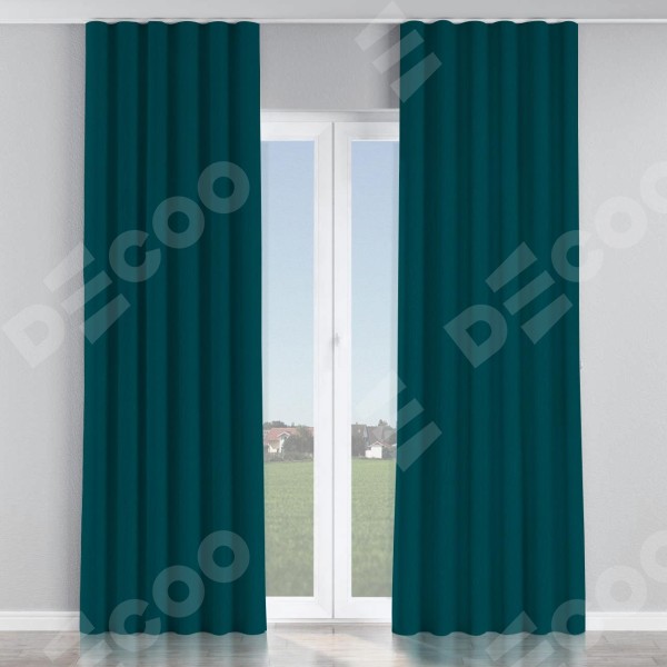 Комплект прямых штор, от производителя «Cortin», пошиты из ткани канвас изумрудный, артикул ткани v-12487. С изнаночной стороны в верхней части штор пристрачивается шторная лента с декоративными складками «Волна». Для создания элегантных складок прямые шторы шьются по стандарту с коэффициентом 1:2 (на 100 см. ширины проёма 200 см. ширины ткани).
