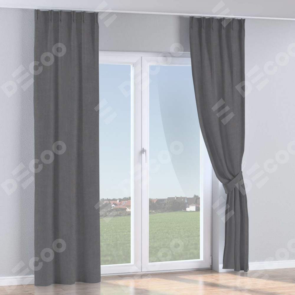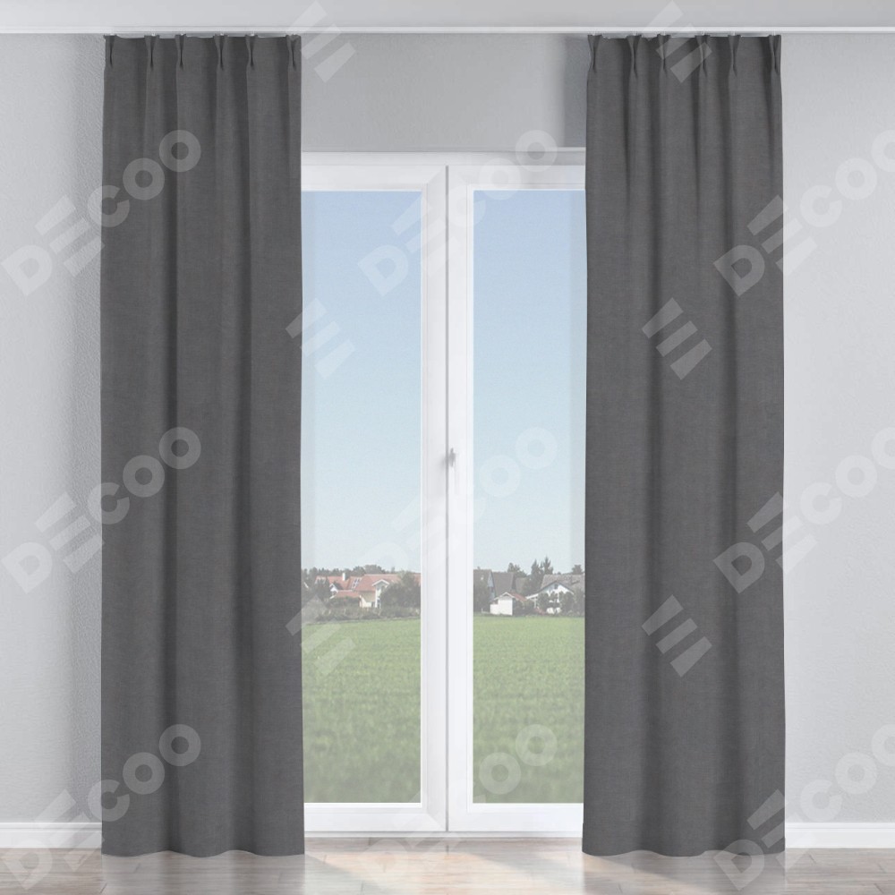 Комплект прямых штор, от производителя «Cortin», пошиты из ткани канвас мокрый асфальт, артикул ткани v-1083. С изнаночной стороны в верхней части штор пристрачивается шторная лента с декоративными складками «Кустик». Для создания элегантных складок прямые шторы шьются по стандарту с коэффициентом 1:2 (на 100 см. ширины проёма 200 см. ширины ткани).