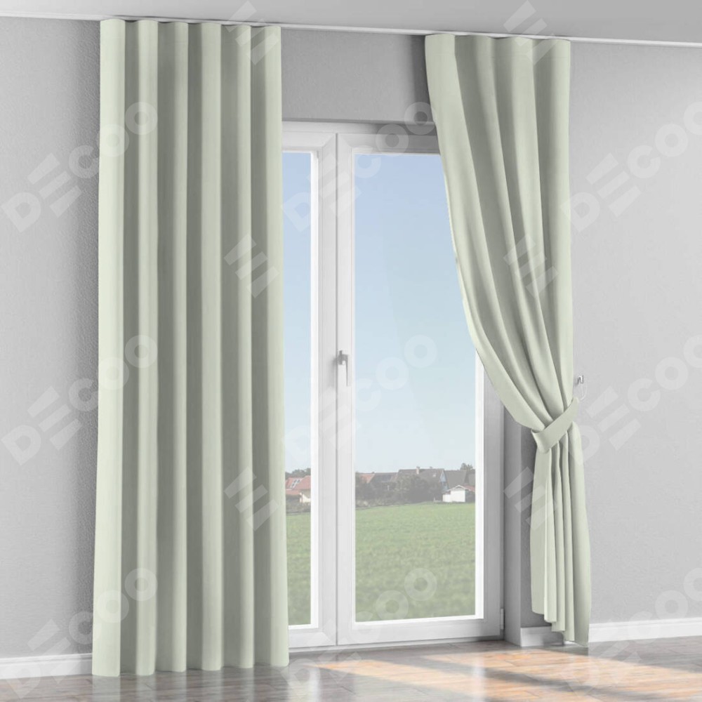 Комплект прямых штор, от производителя «Cortin», пошиты из ткани канвас сливочный, артикул ткани v-94. С изнаночной стороны в верхней части штор пристрачивается шторная лента с декоративными складками «Волна». Для создания элегантных складок прямые шторы шьются по стандарту с коэффициентом 1:2 (на 100 см. ширины проёма 200 см. ширины ткани).