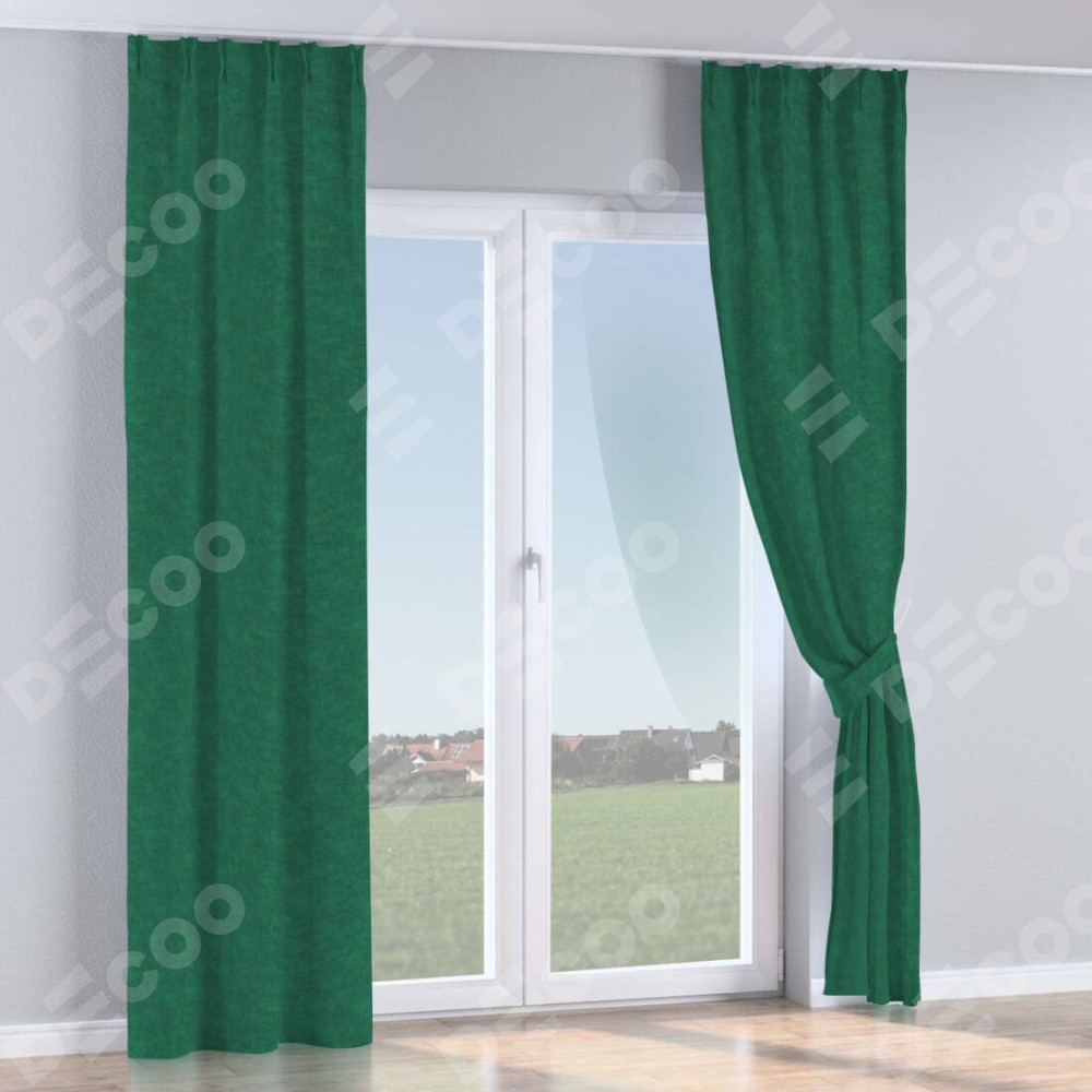Комплект прямых штор, от производителя «Cortin», пошиты из ткани канвас тёмно-зелёный, артикул ткани v-469. С изнаночной стороны в верхней части штор пристрачивается шторная лента с декоративными складками «Кустик». Для создания элегантных складок прямые шторы шьются по стандарту с коэффициентом 1:2 (на 100 см. ширины проёма 200 см. ширины ткани).