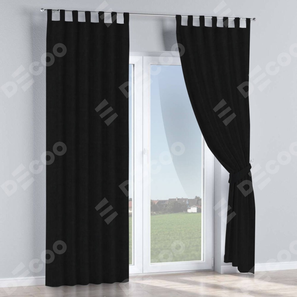 Комплект прямых штор, от производителя «Cortin», пошиты из ткани канвас черный, артикул ткани v-194. Данная модель пошита на петлях, комплектуется на выбор круглым карнизом и подходит для монтажа на стену или потолок. Прямые шторы на петлях шьются по стандарту с коэффициентом 1/2 (на 100 см. ширины проёма 200 см. ширины ткани), отличительным преимуществом данной модели является простой способ монтажа. Достаточно повесить ее на трубу и штора готова!