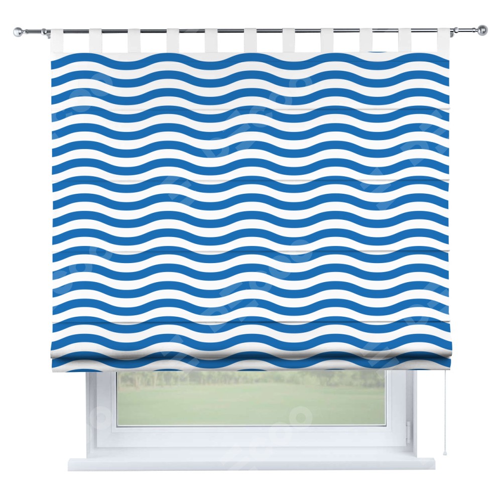 Римская штора производителя «Cortin», используется для проёма, пошита из ткани блэкаут с нанесением сублимационной печати «Волнистые линии». Данная модель пошита на петлях, комплектуется на выбор круглым карнизом и подходит для монтажа на стену. Римская штора на петлях имеет простую систему регулировки высоты, отличительным преимуществом данной модели является простой способ монтажа. Достаточно повесить ее на трубу и штора готова!