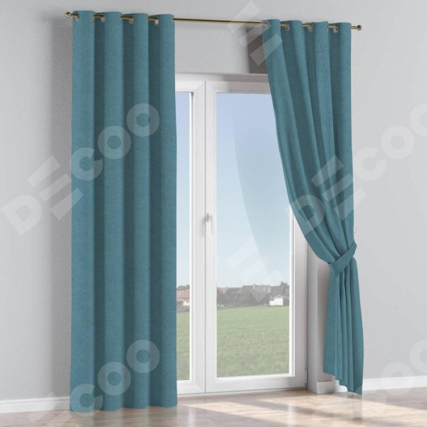 Комплект прямых штор, от производителя «Cortin», пошиты из ткани лён димаут светло-синий, артикул ткани 91007. Данная модель пошита на люверсах, комплектуется на выбор круглым карнизом и подходит для монтажа на стену или потолок. Прямые шторы на люверсах шьются по стандарту с коэффициентом 1/2 (на 100 см. ширины проёма 200 см. ширины ткани), отличительным преимуществом данной модели является простой способ монтажа. Достаточно повесить ее на трубу и штора готова!