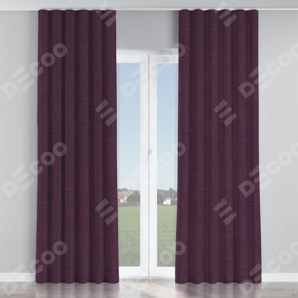 Комплект прямых штор, от производителя «Cortin», пошиты из ткани лён димаут фиолетовый, артикул ткани 16267. С изнаночной стороны в верхней части штор пристрачивается шторная лента с декоративными складками «Волна». Для создания элегантных складок прямые шторы шьются по стандарту с коэффициентом 1:2 (на 100 см. ширины проёма 200 см. ширины ткани).