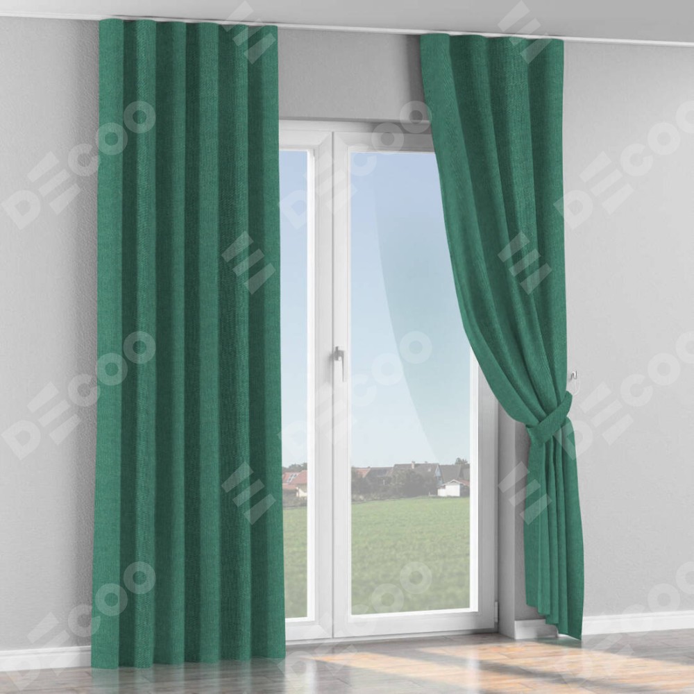 Комплект прямых штор, от производителя «Cortin», пошиты из ткани лён димаут светло-бирюзовый, артикул ткани 91005. С изнаночной стороны в верхней части штор пристрачивается шторная лента с декоративными складками «Волна». Для создания элегантных складок прямые шторы шьются по стандарту с коэффициентом 1:2 (на 100 см. ширины проёма 200 см. ширины ткани).