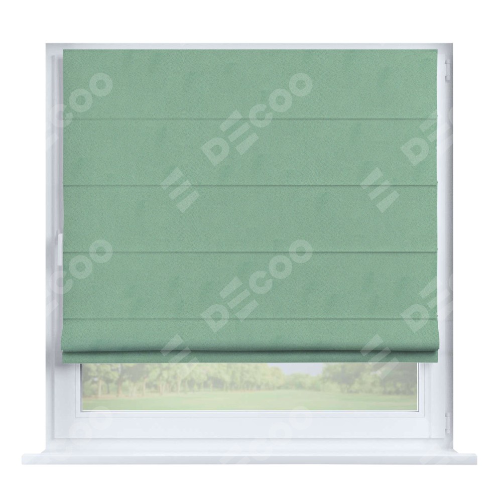 Римская штора производителя «Cortin», устанавливается на створку окна, пошита из ткани блэкаут однотонный ментоловый, артикул 91572−1. Штора шьётся по индивидуальным размерам, для данного типа римской шторы возможная ширина от 35 до 150 см., высота до 250 см.
