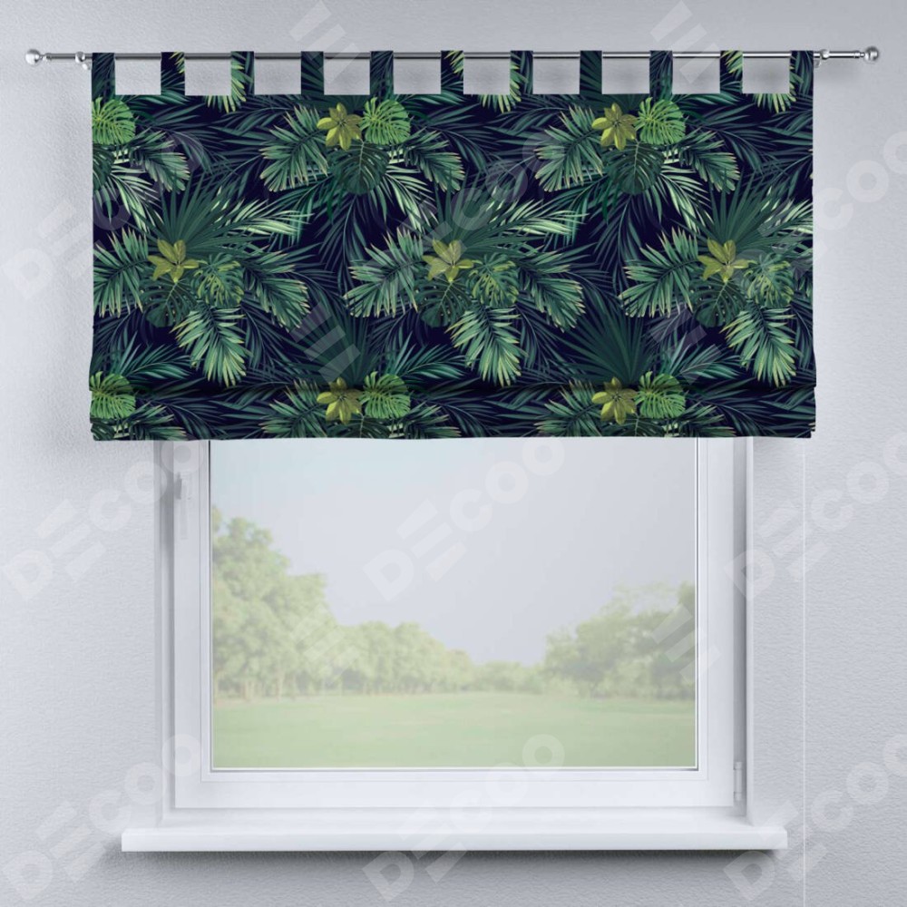 Римская штора производителя «Cortin», используется для проёма, пошита из ткани блэкаут с нанесением сублимационной печати «Пальмовые листья». Данная модель пошита на петлях, комплектуется на выбор круглым карнизом и подходит для монтажа на стену. Римская штора на петлях имеет простую систему регулировки высоты, отличительным преимуществом данной модели является простой способ монтажа. Достаточно повесить ее на трубу и штора готова!