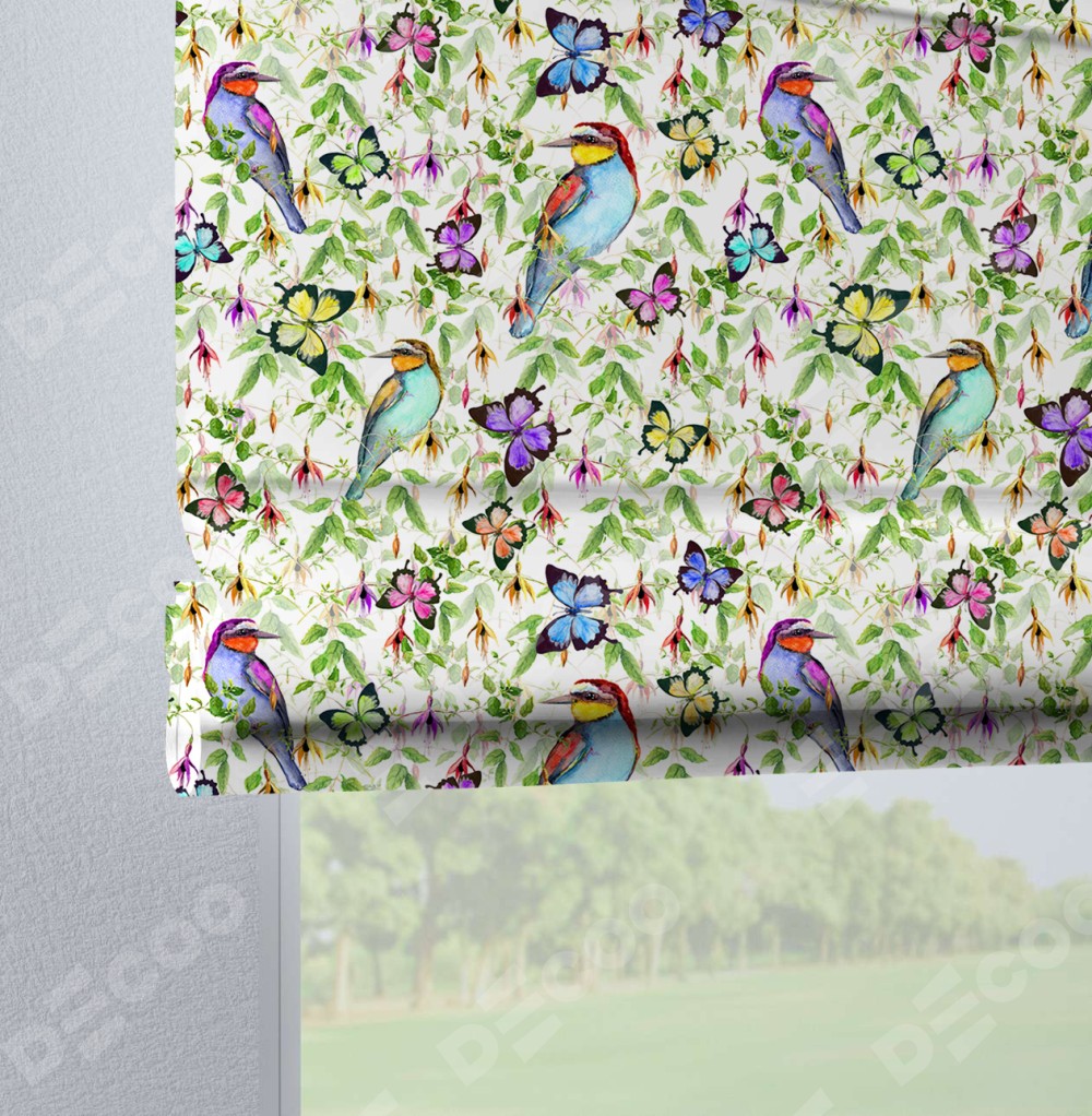Римская штора «Кортин» на петлях «Тропические птицы»