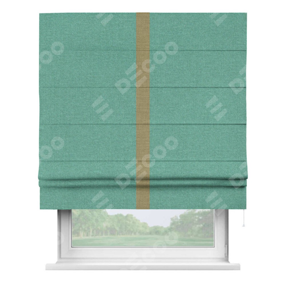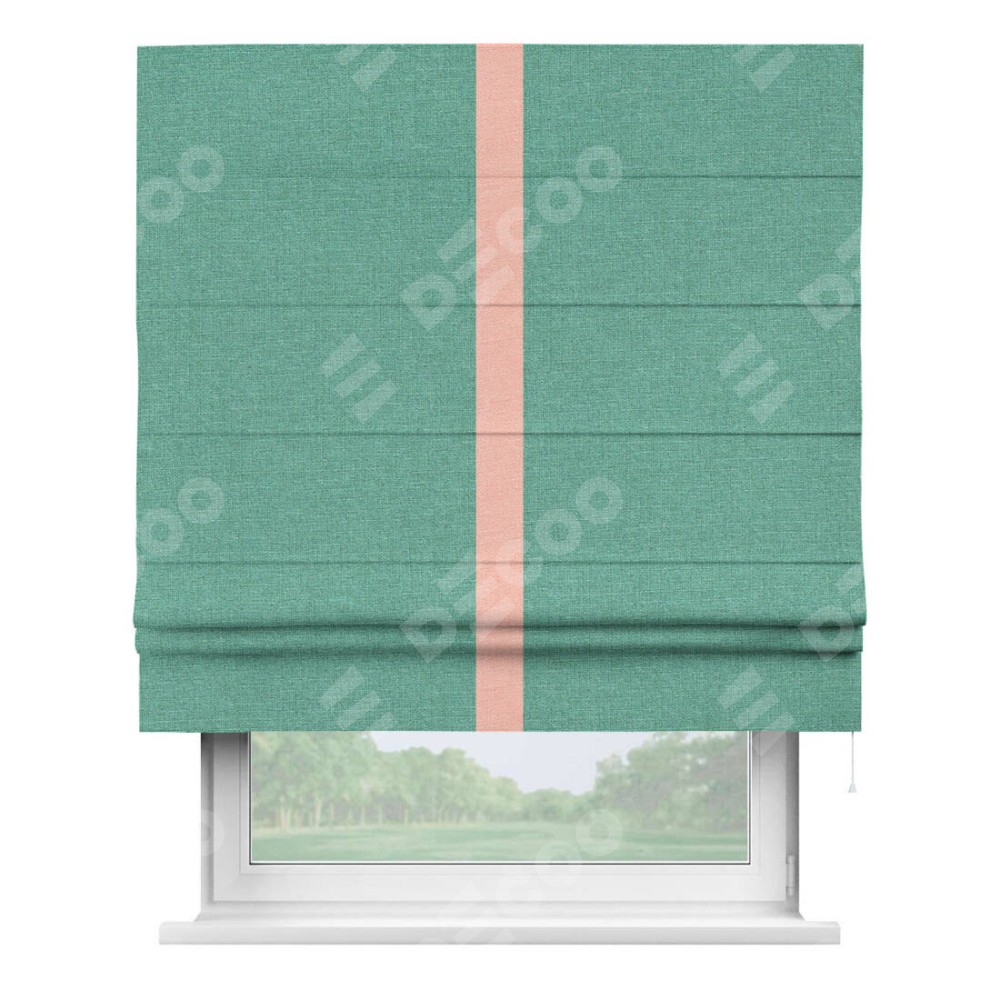 Римская штора «Кортин» с кантом Хайвэй, для проема, лён светло-бирюзовый