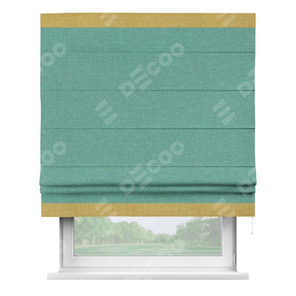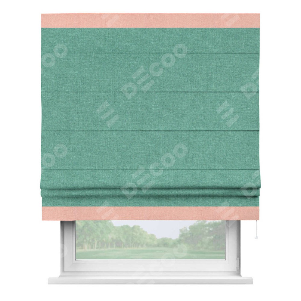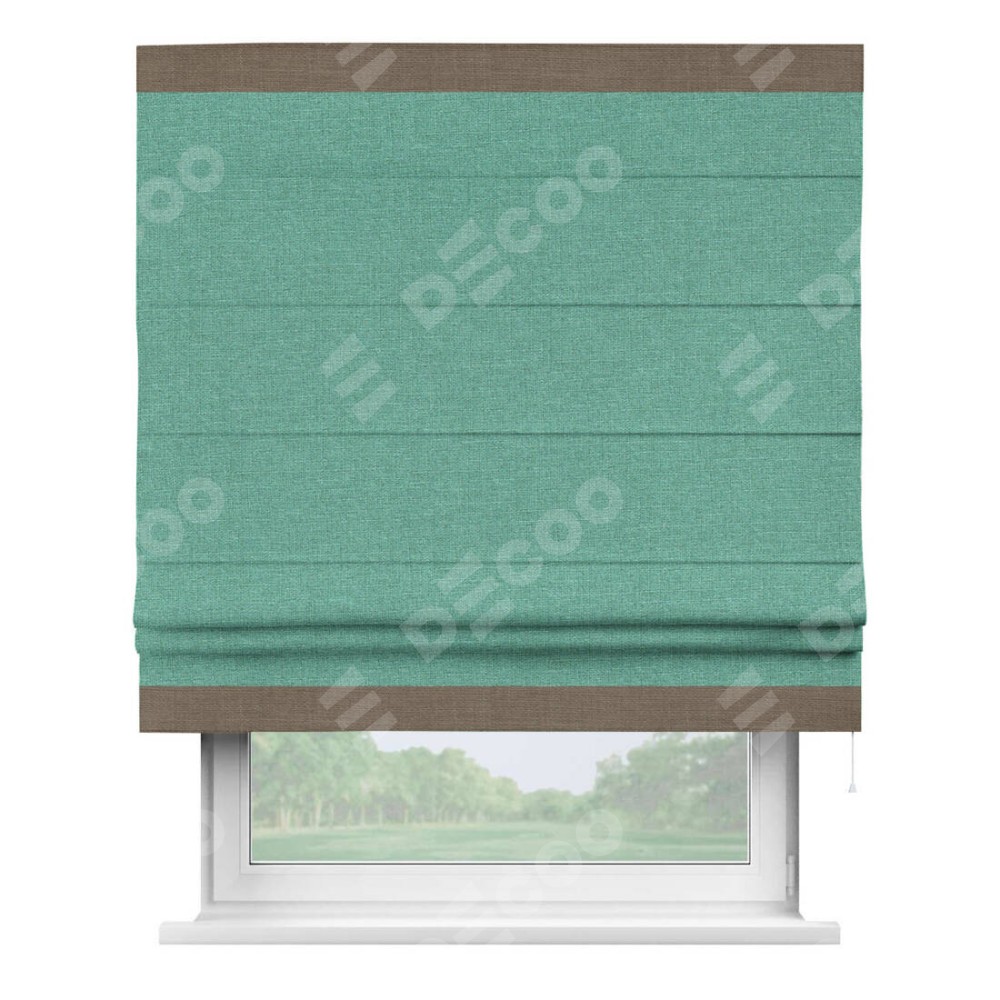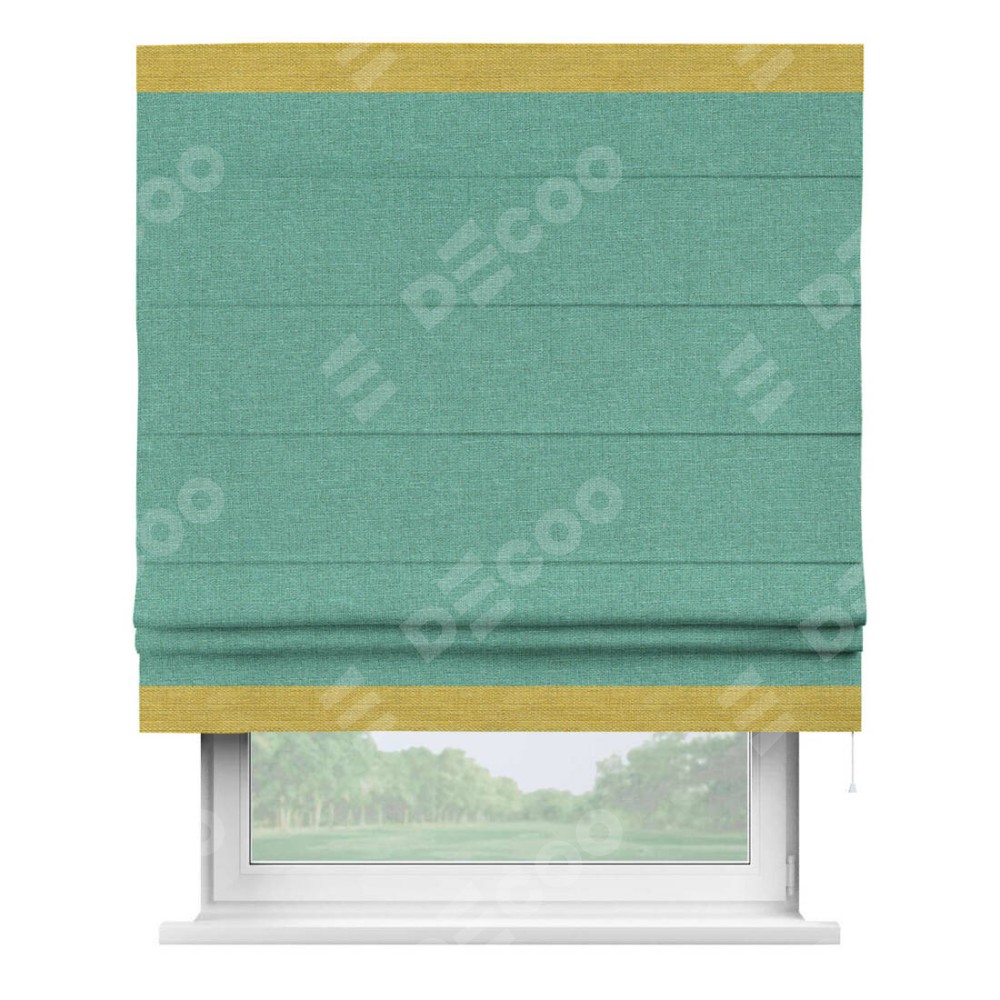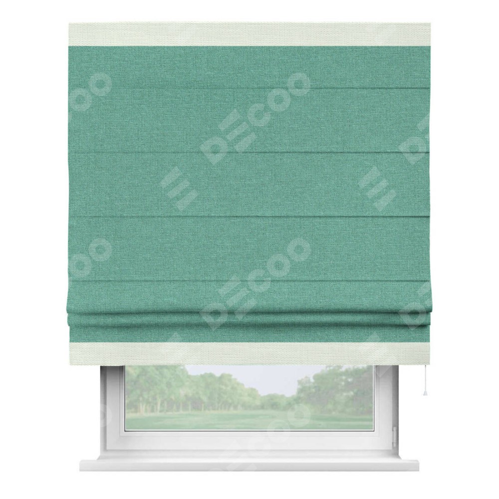 Римская штора «Кортин» с кантом Горизонт, для проема, лён светло-бирюзовый