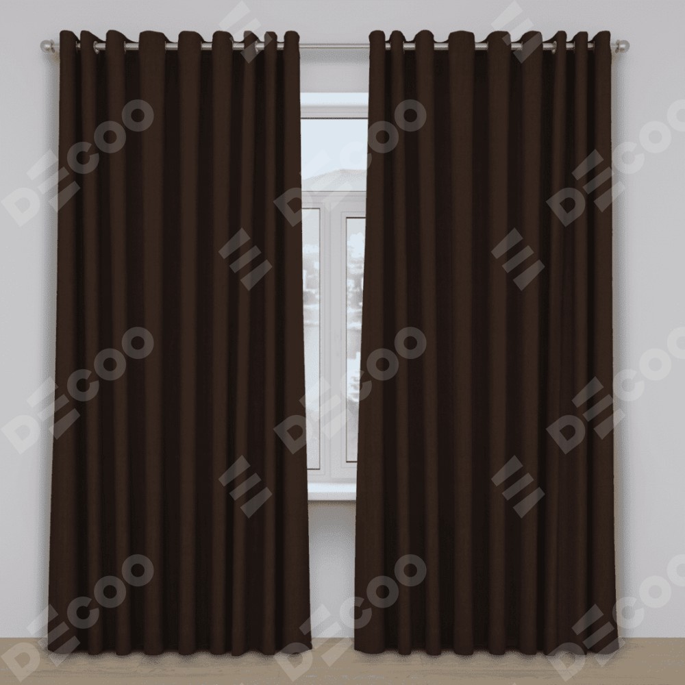 Комплект прямых штор, от производителя «Cortin», пошиты из ткани блэкаут однотонный темно-коричневый, артикул ткани 88287. Данная модель пошита на люверсах, комплектуется на выбор круглым карнизом и подходит для монтажа на стену. Прямые шторы на люверсах шьются по стандарту с коэффициентом 1/2 (на 100 см. ширины проёма 200 см. ширины ткани), отличительным преимуществом данной модели является простой способ монтажа. Достаточно повесить ее на трубу и штора готова!