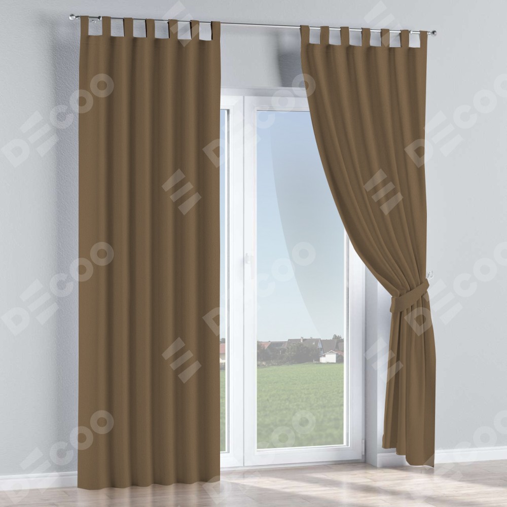 Комплект прямых штор, от производителя «Cortin», пошиты из ткани блэкаут однотонный коричневый, артикул ткани 91334. Данная модель пошита на петлях, комплектуется на выбор круглым карнизом и подходит для монтажа на стену или потолок. Прямые шторы на петлях шьются по стандарту с коэффициентом 1/2 (на 100 см. ширины проёма 200 см. ширины ткани), отличительным преимуществом данной модели является простой способ монтажа. Достаточно повесить ее на трубу и штора готова!