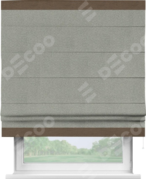 Римская штора «Кортин» для проема, лён димаут серый с кантом Горизонт