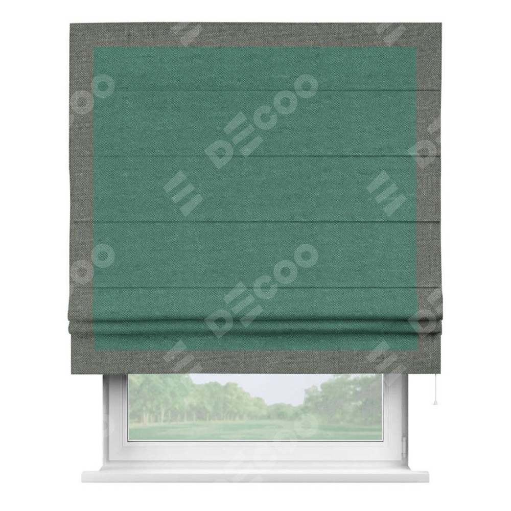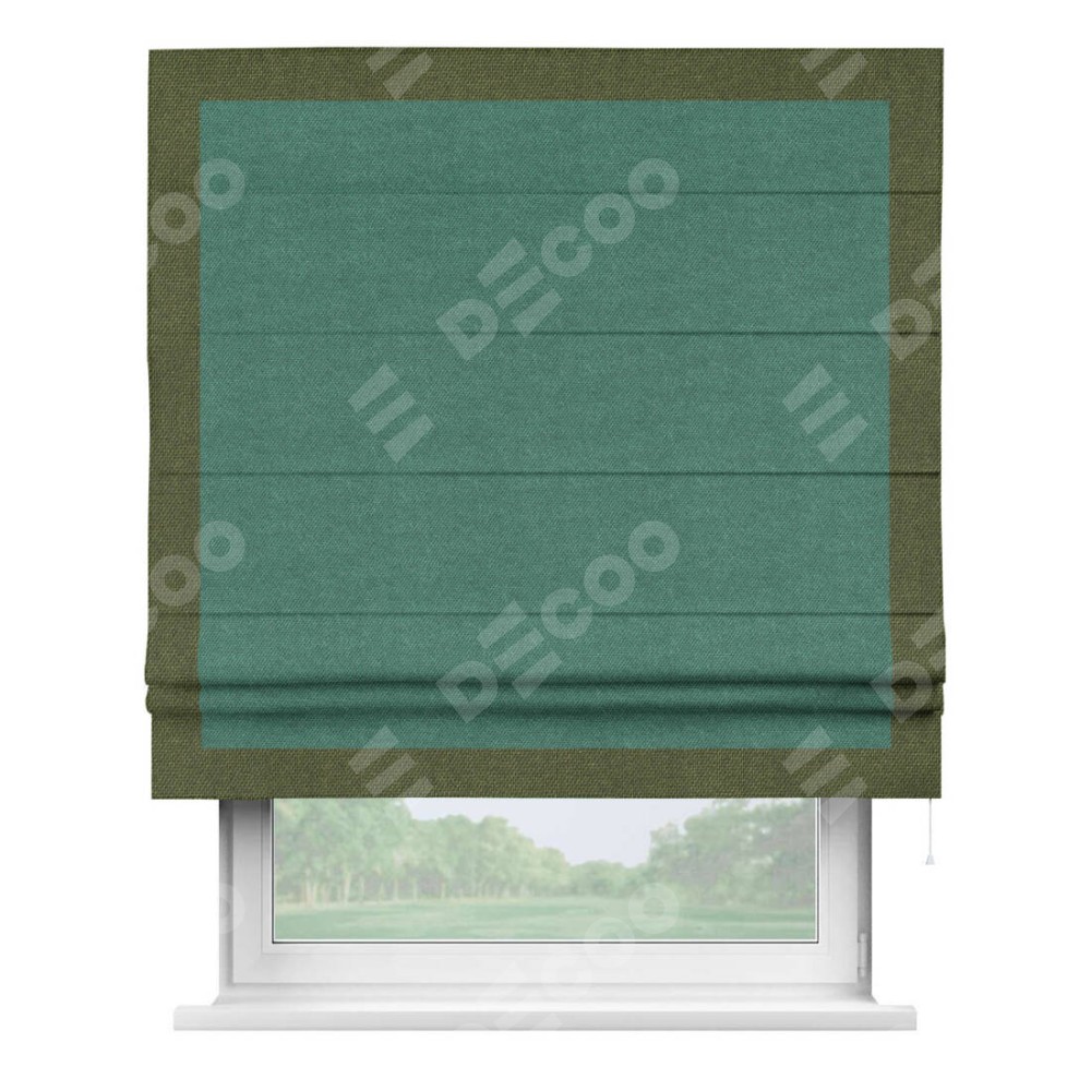Римская штора «Кортин» для проема, лён димаут светло-бирюзовый с кантом Чесс