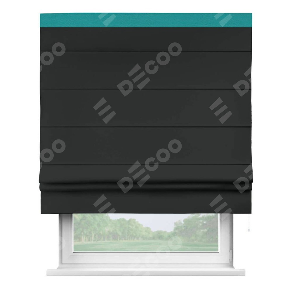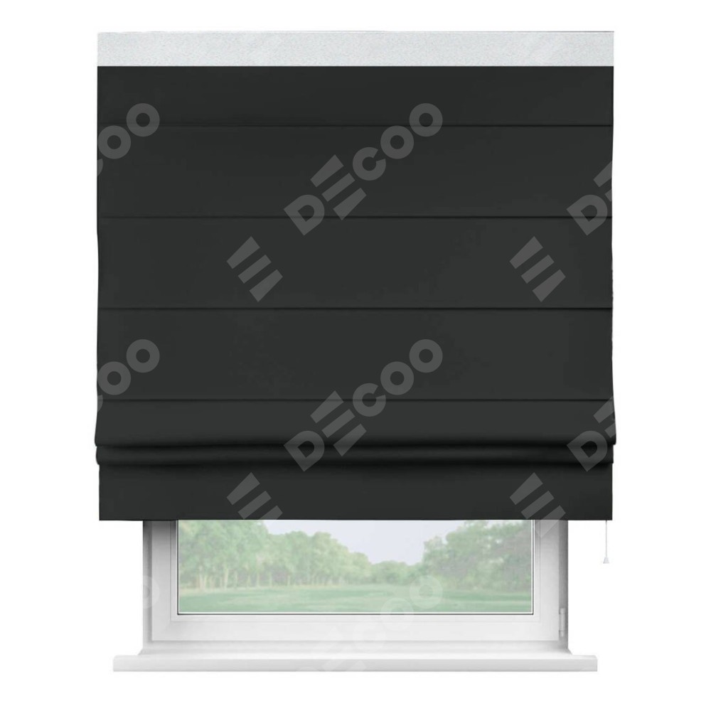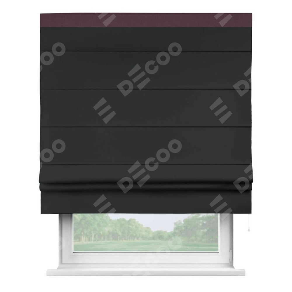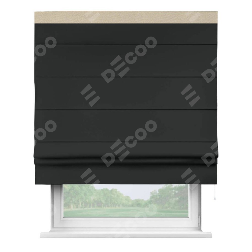 Римская штора «Кортин» для проема, блэкаут однотонный черный с кантом Кинг