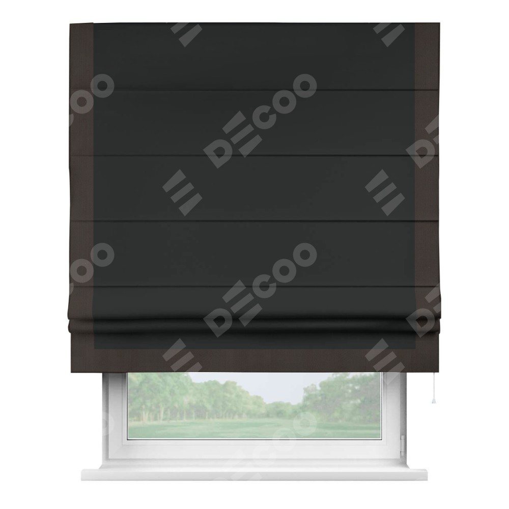 Римская штора производителя «Cortin», используется для проёма, пошита из ткани блэкаут однотонный черный, артикул ткани 91571−2. Отделка шторы кантом «Виктория», ткань для канта используется из блэкаута однотонного разной расцветки на выбор. Имеет универсальный механизм и подходит для монтажа: на потолок, на стену и в нишу.