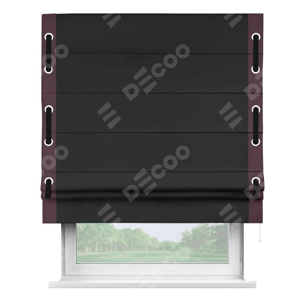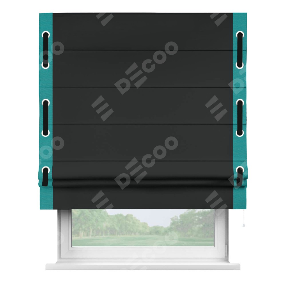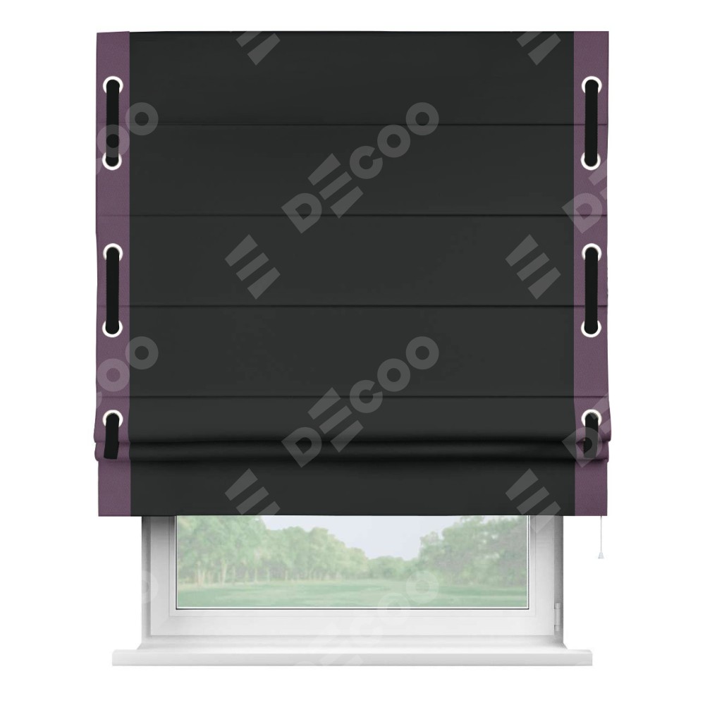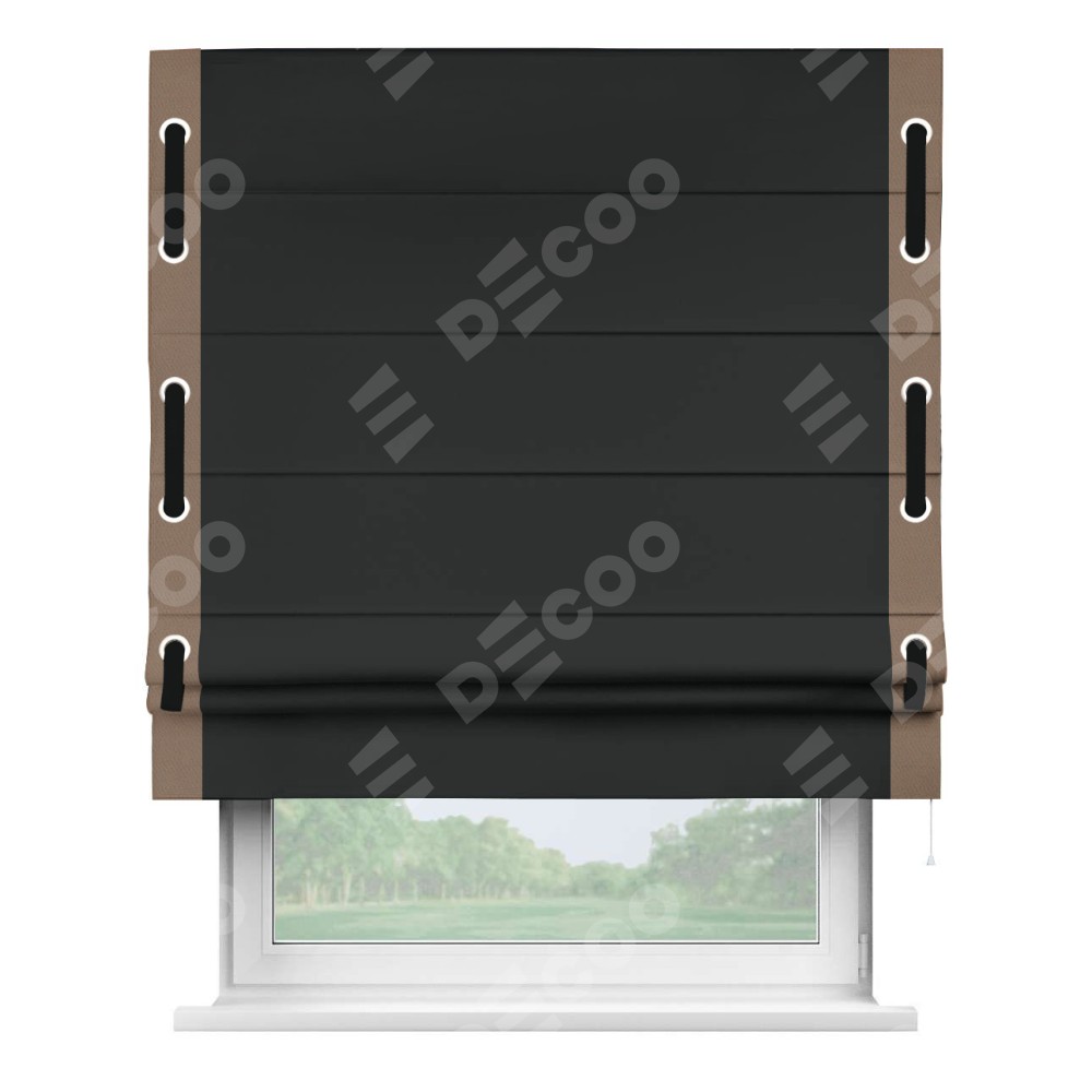 Римская штора «Кортин» для проема, блэкаут однотонный черный с кантом Стрим Дуо (люверсы с пояском)