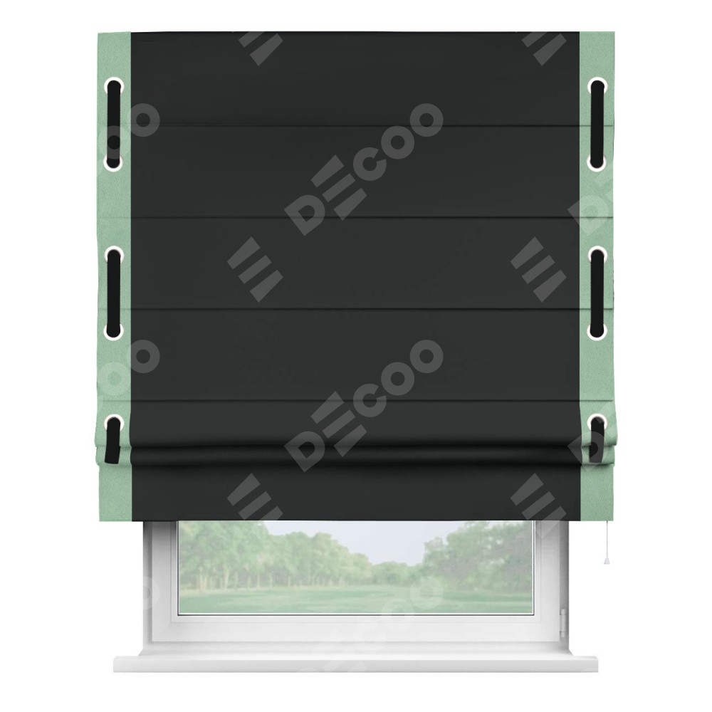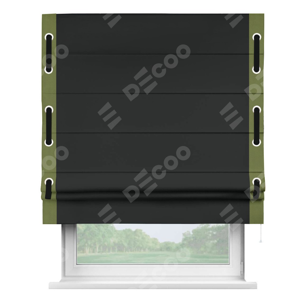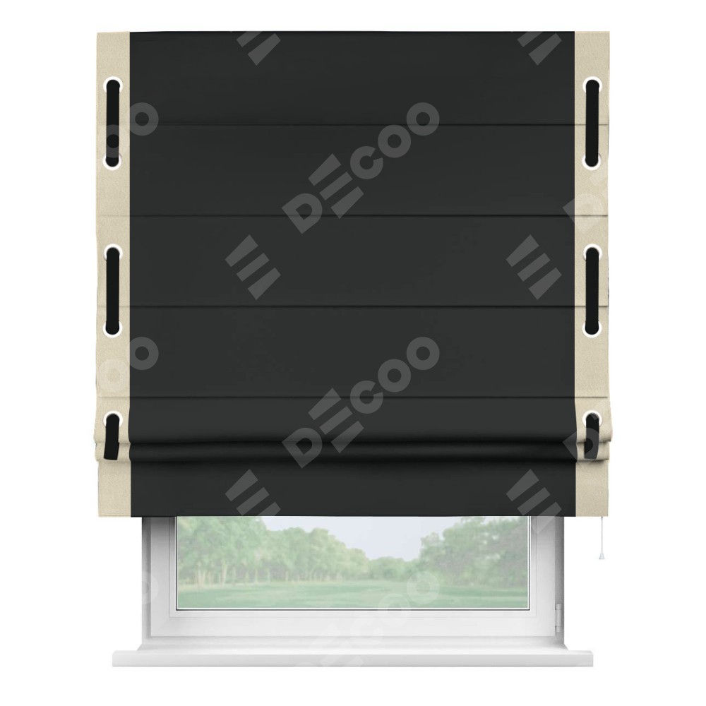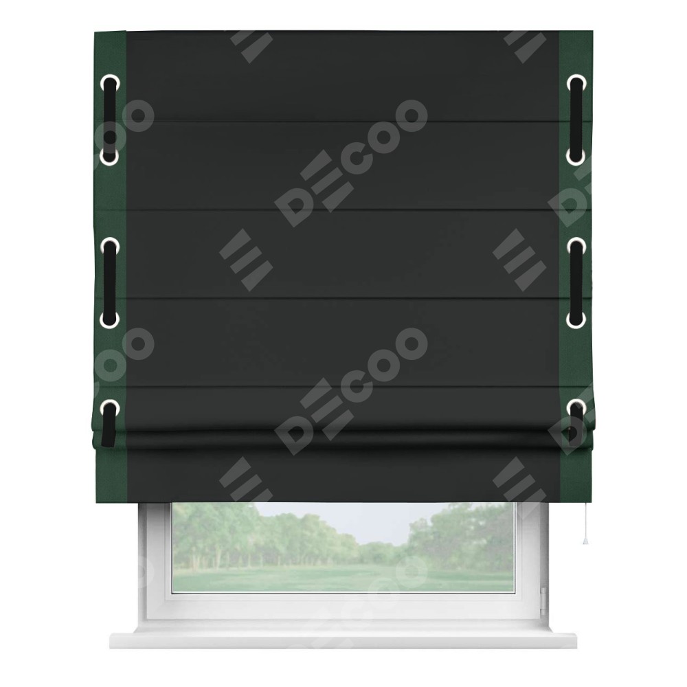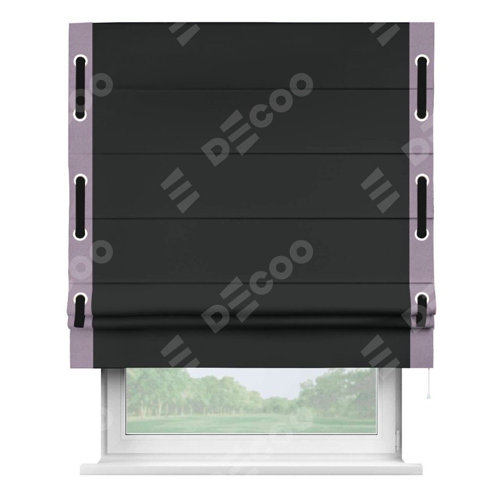 Римская штора «Кортин» для проема, блэкаут однотонный черный с кантом Стрим Дуо (люверсы с пояском)