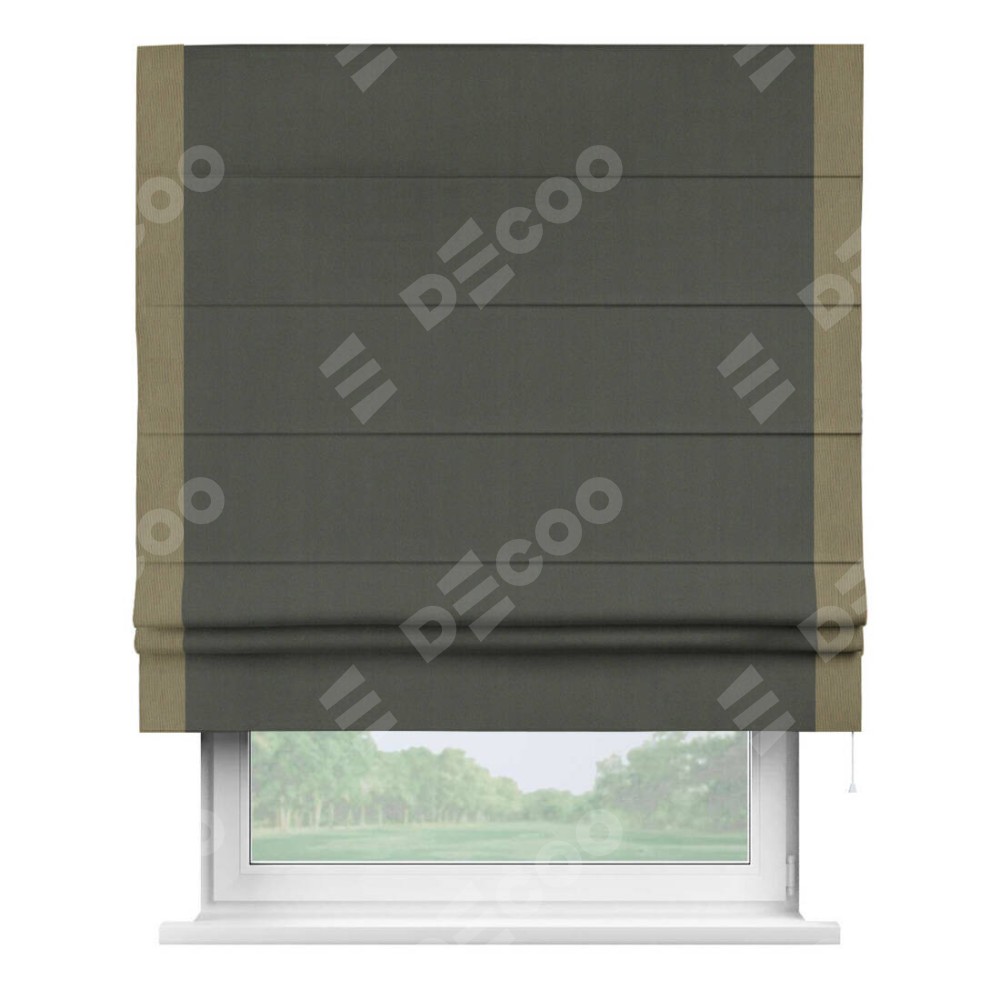 Римская штора «Кортин» для проема, блэкаут однотонный дымчато-серый с кантом Стрим Дуо