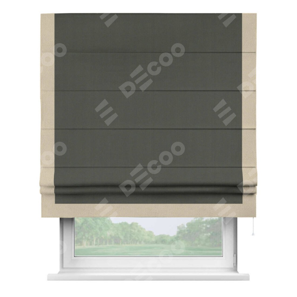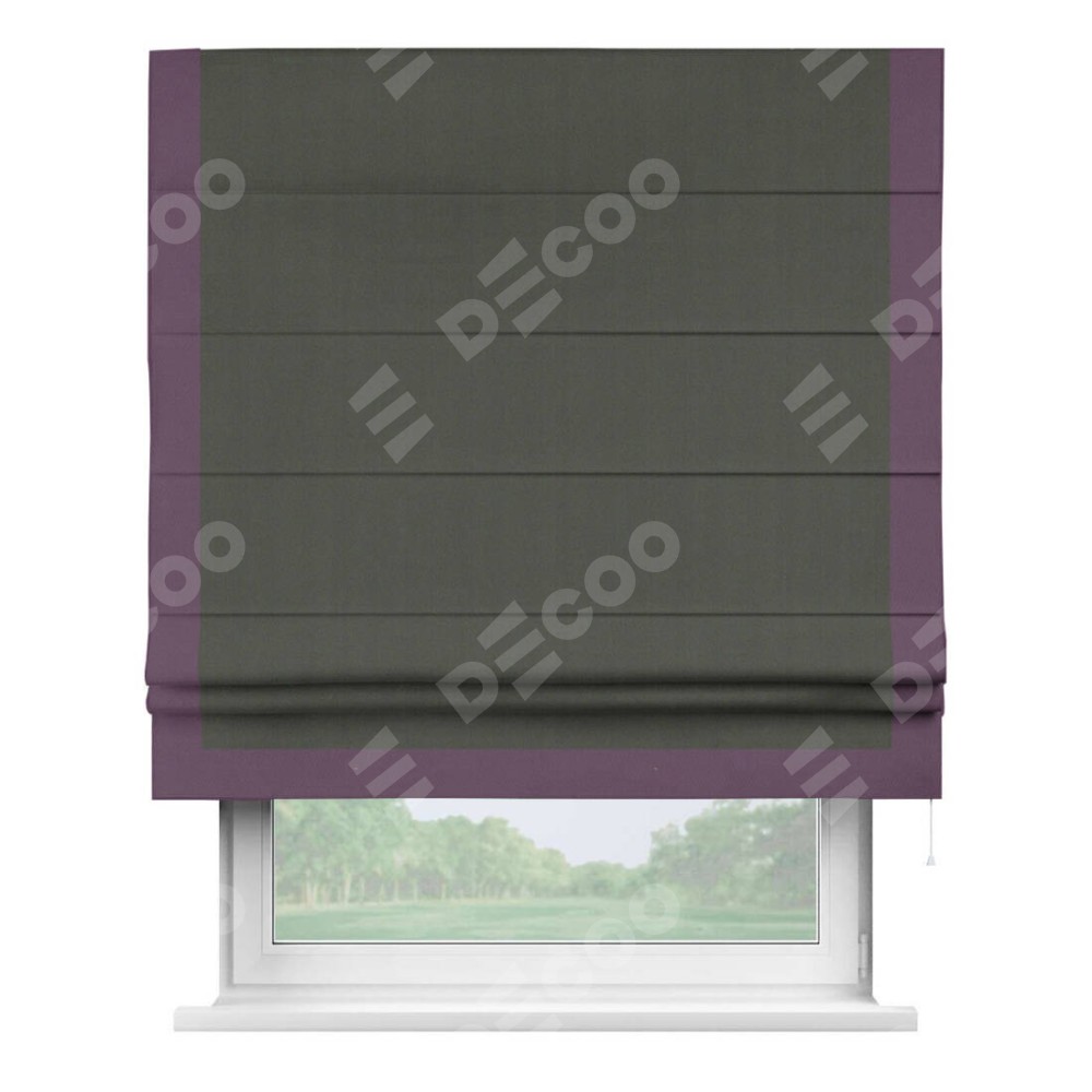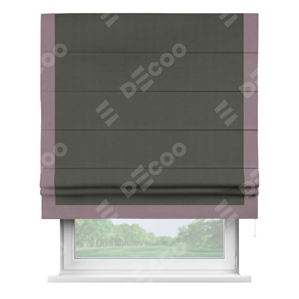 Римская штора «Кортин» для проема, блэкаут однотонный дымчато-серый с кантом Виктория