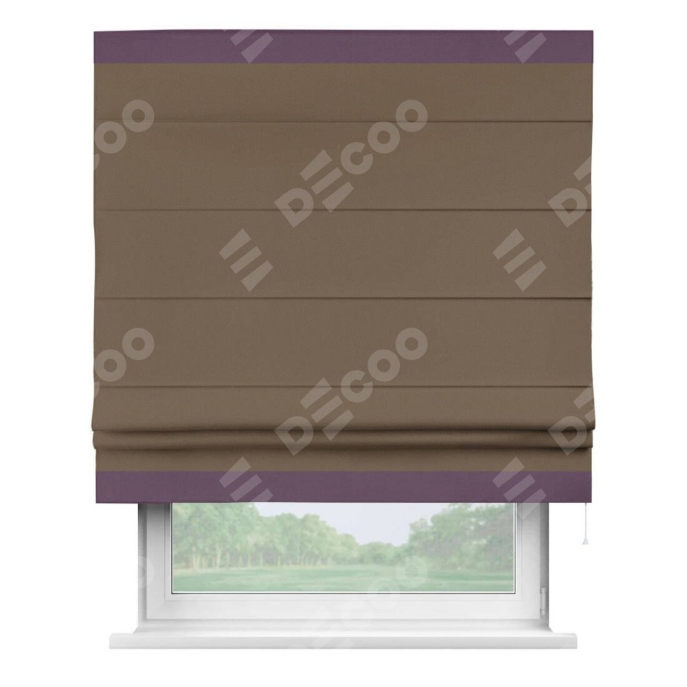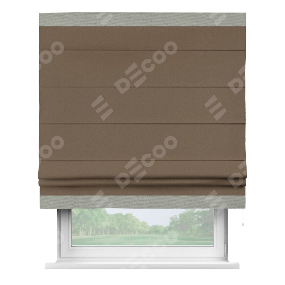 Римская штора «Кортин» для проема, блэкаут однотонный коричневый с кантом Горизонт