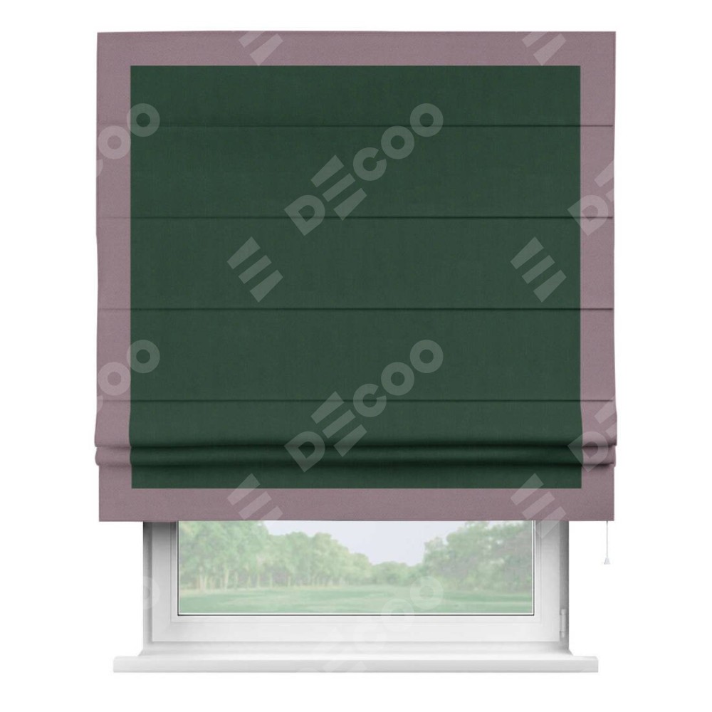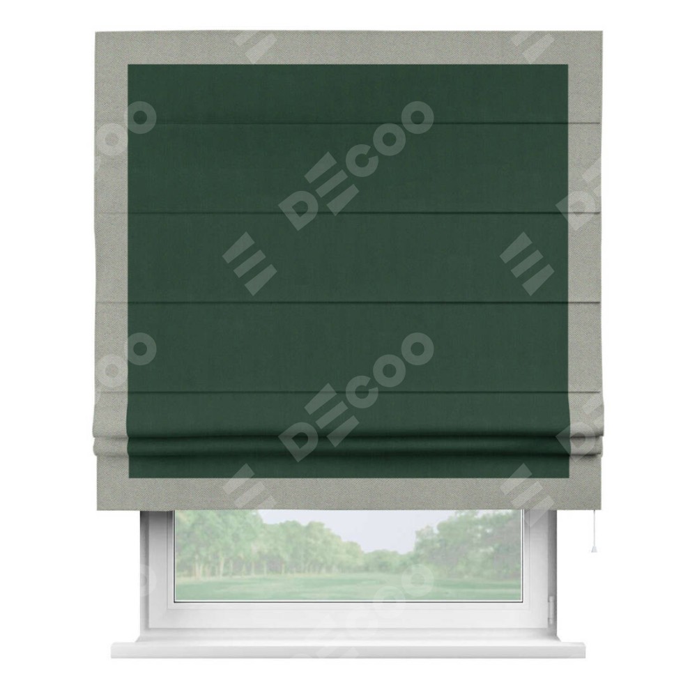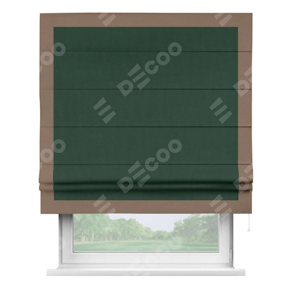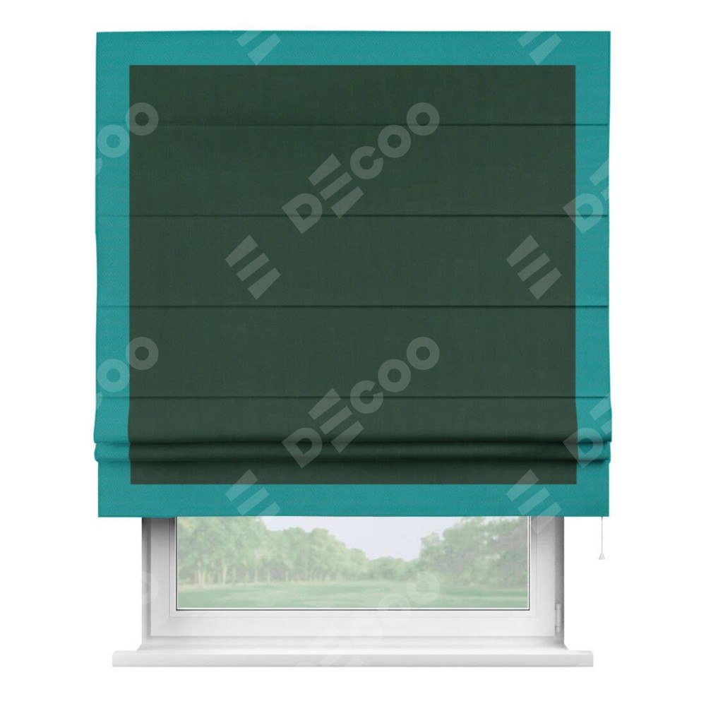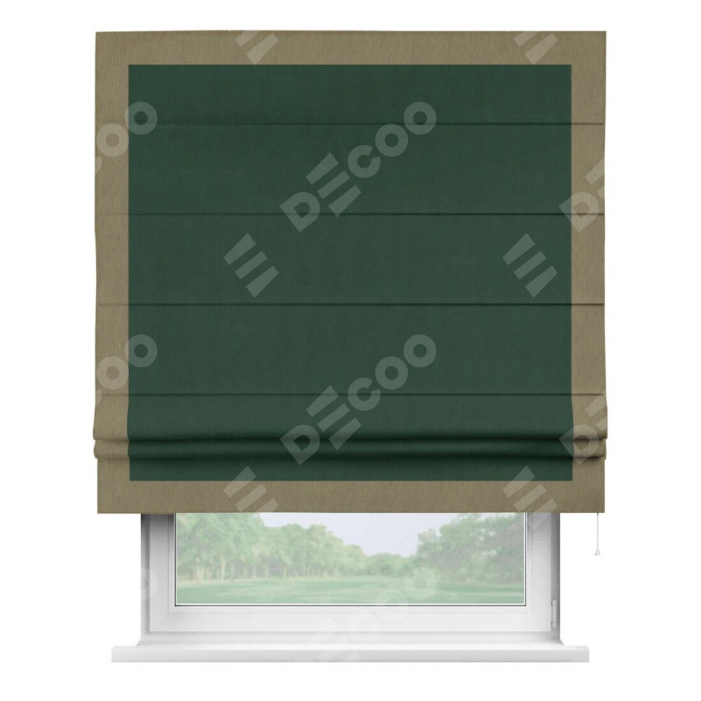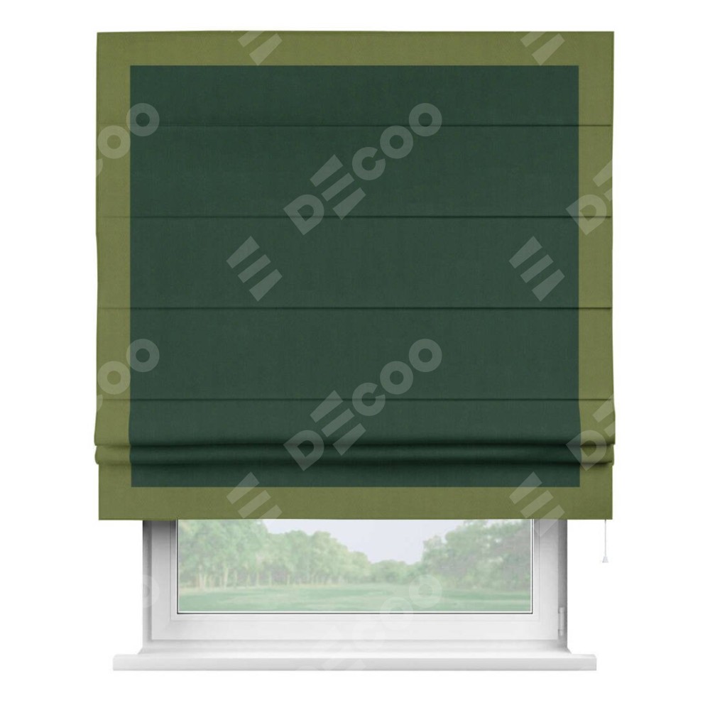 Римская штора «Кортин» для проема, блэкаут однотонный зелёный с кантом Чесс