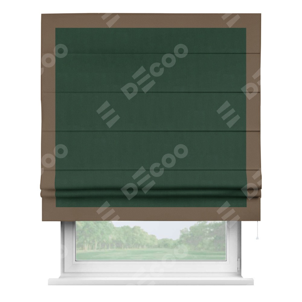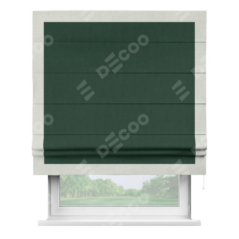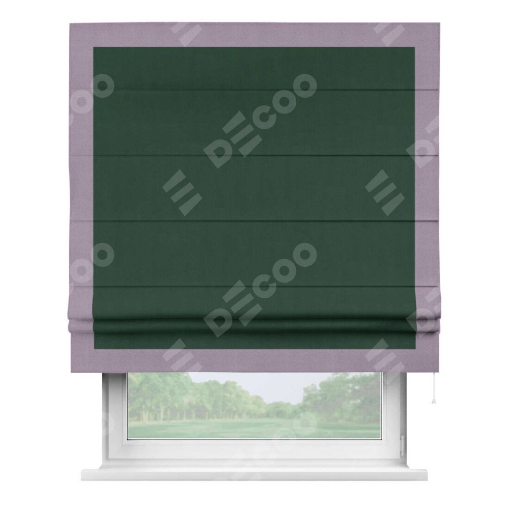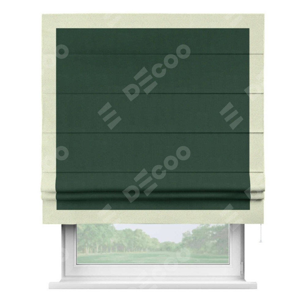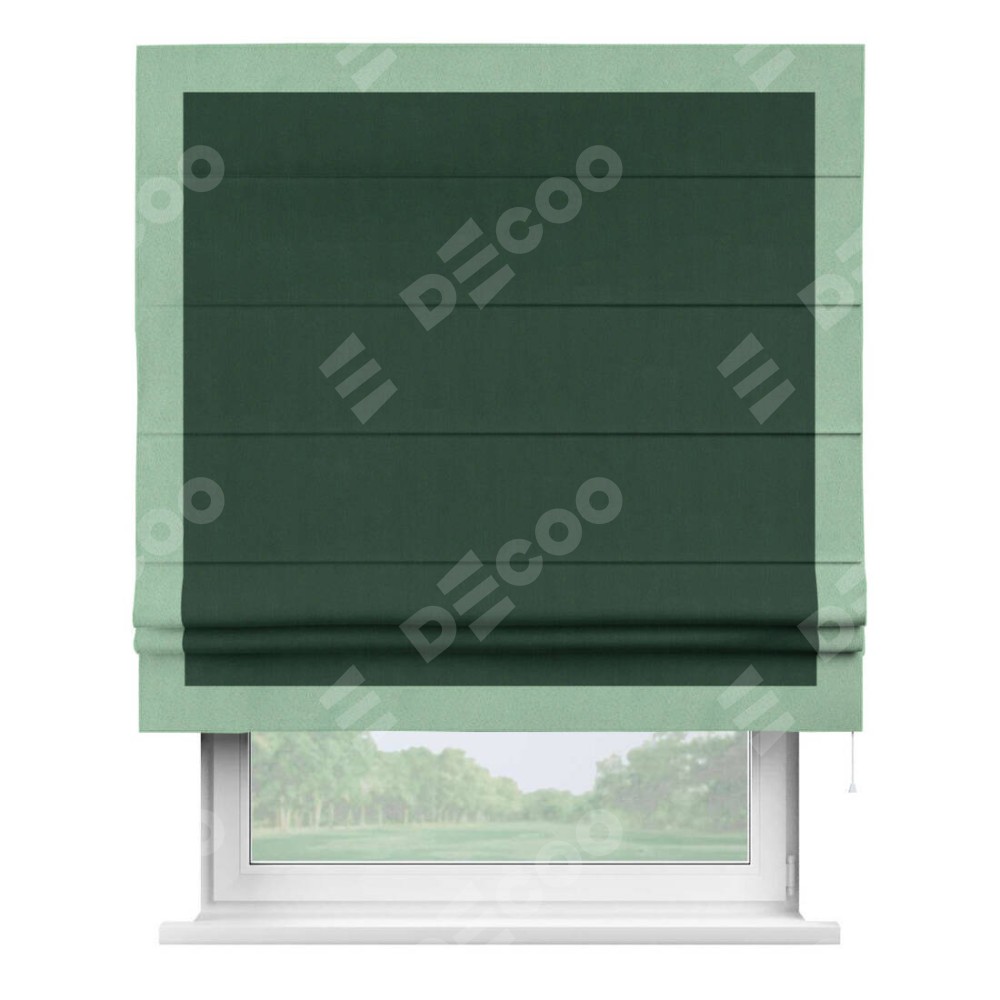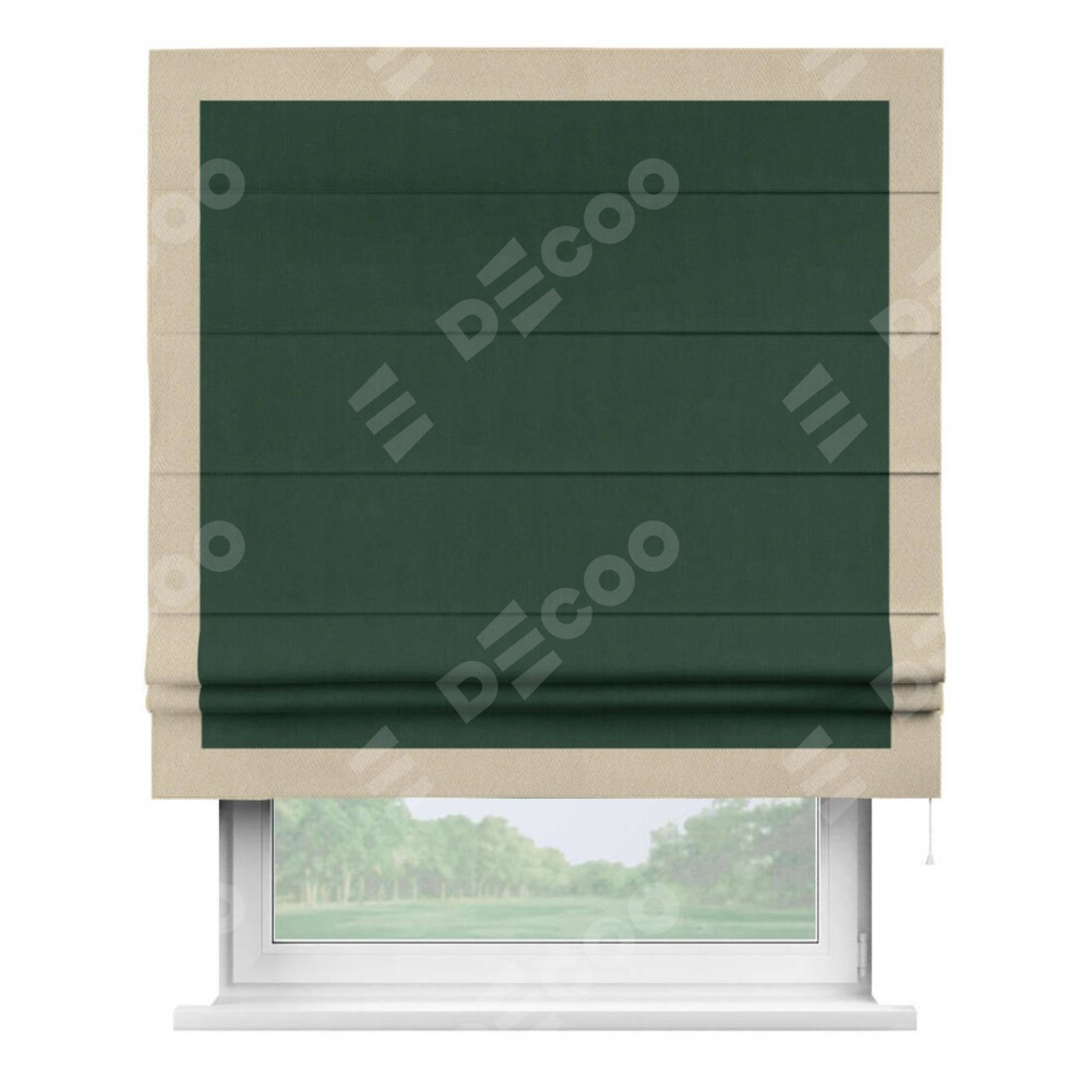 Римская штора «Кортин» для проема, блэкаут однотонный зелёный с кантом Чесс