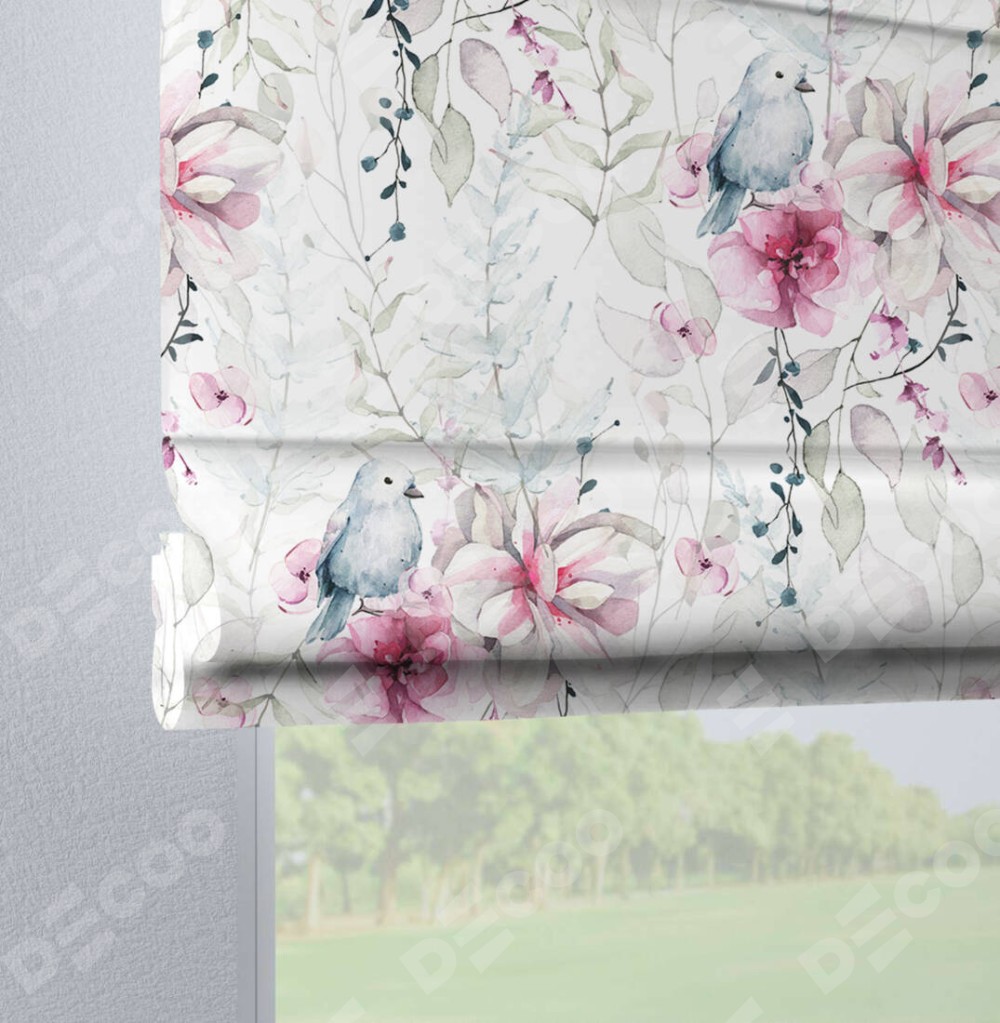 Римская штора производителя «Cortin», используется для проёма, пошита из ткани блэкаут с нанесением сублимационной печати «Мелодия цветов». Данная модель пошита на петлях, комплектуется на выбор круглым карнизом и подходит для монтажа на стену. Римская штора на петлях имеет простую систему регулировки высоты, отличительным преимуществом данной модели является простой способ монтажа. Достаточно повесить ее на трубу и штора готова!