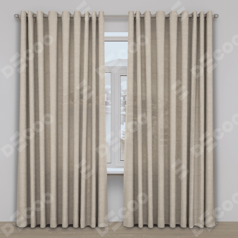 Комплект прямых штор, от производителя «Cortin», пошиты из ткани лён кашемир бежевый, артикул ткани 17206. Данная модель пошита на люверсах, комплектуется на выбор круглым карнизом и подходит для монтажа на стену. Прямые шторы на люверсах шьются по стандарту с коэффициентом 1/2 (на 100 см. ширины проёма 200 см. ширины ткани), отличительным преимуществом данной модели является простой способ монтажа. Достаточно повесить ее на трубу и штора готова!