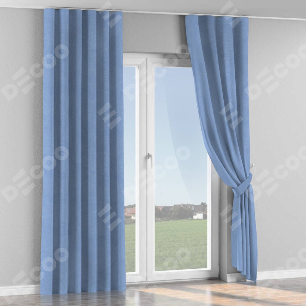 Комплект прямых штор, от производителя «Cortin», пошиты из ткани вельвет васильковый, артикул ткани 33799. С изнаночной стороны в верхней части штор пристрачивается шторная лента с декоративными складками «Волна». Для создания элегантных складок прямые шторы шьются по стандарту с коэффициентом 1:2 (на 100 см. ширины проёма 200 см. ширины ткани).