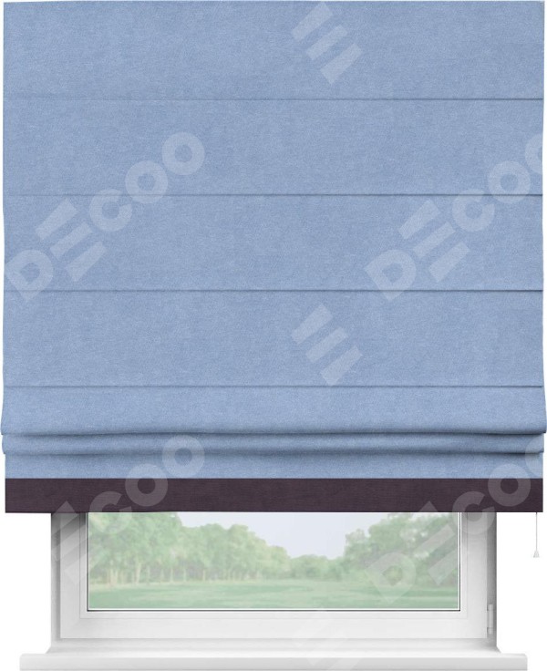 Римская штора «Кортин» для проема, вельвет васильковый с кантом Джестер