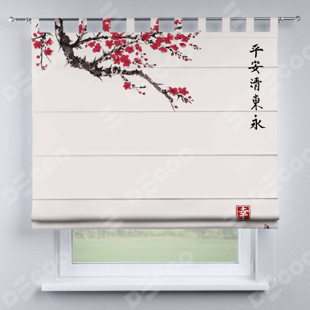 Римская штора производителя «Cortin», используется для проёма, пошита из ткани блэкаут с нанесением сублимационной печати «Цветущая сакура». Данная модель пошита на петлях, комплектуется на выбор круглым карнизом и подходит для монтажа на стену. Римская штора на петлях имеет простую систему регулировки высоты, отличительным преимуществом данной модели является простой способ монтажа. Достаточно повесить ее на трубу и штора готова!