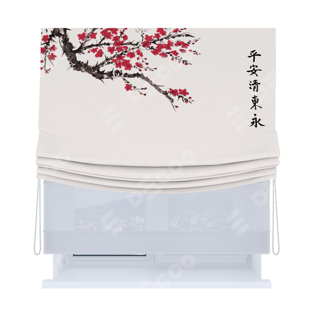 Римская штора «Кортин», день-ночь с мягкими складками, «Цветущая сакура»