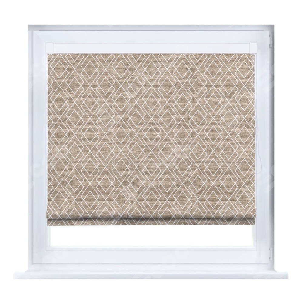 Римская штора производителя «Cortin», устанавливается на створку окна, пошита из ткани блэкаут с нанесением сублимационной печати «Кристальные грани». Штора шьётся по индивидуальным размерам, для данного типа римской шторы возможная ширина от 35 до 150 см., высота до 250 см.