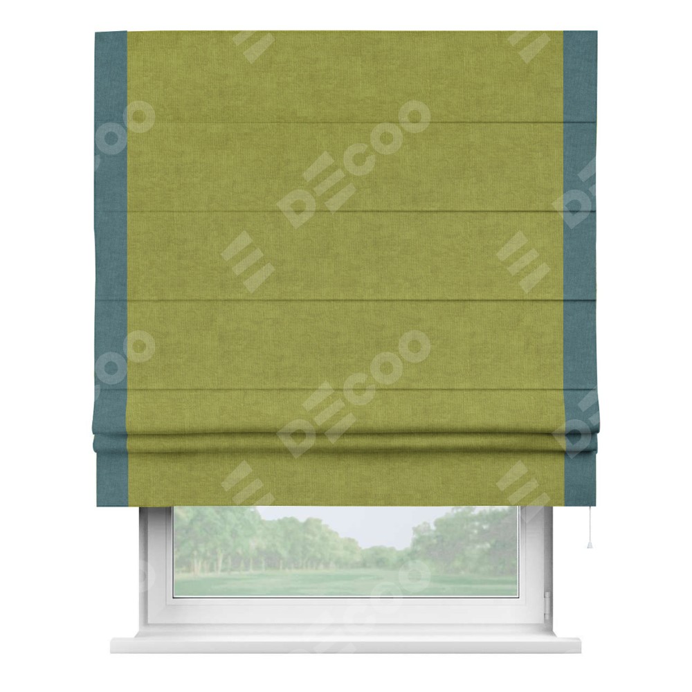 Римская штора «Кортин» для проема, канвас зелёное яблоко, с кантом Стрим Дуо