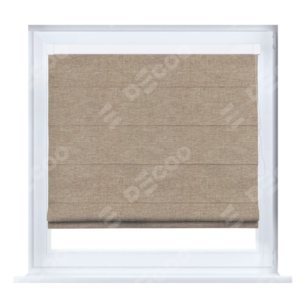 Римская штора кассетного типа, производителя «Cortin», устанавливается только на пластиковые окна и прилегает к стеклопакету, пошита из ткани лён кашемир коричневый, артикул 21614.