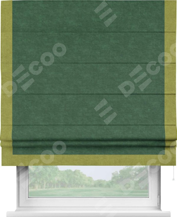 Римская штора «Кортин» для проема, канвас тёмно-зелёный, с кантом Виктория