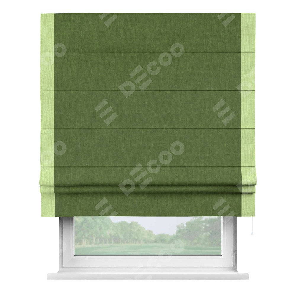 Римская штора «Кортин» для проема, канвас трава, с кантом Стрим Дуо