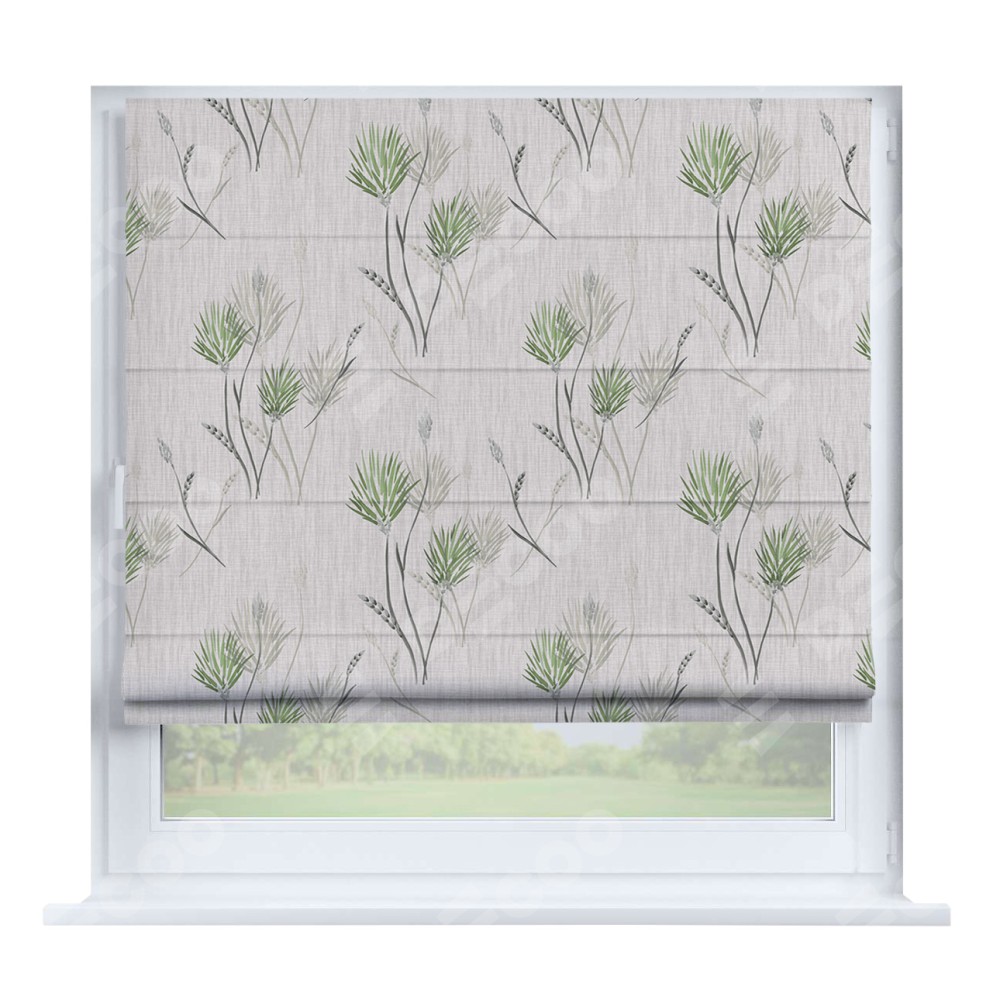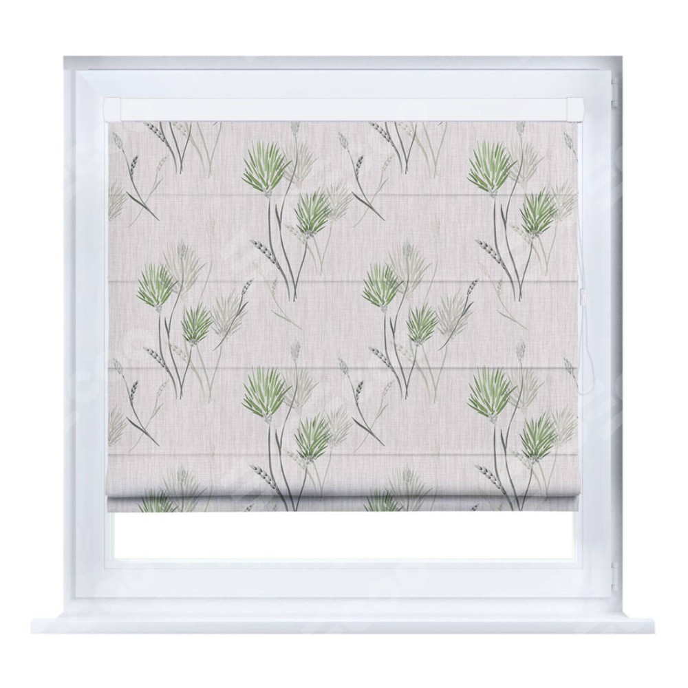 Римская штора производителя «Cortin», устанавливается на створку окна, пошита из ткани блэкаут с нанесением сублимационной печати «Полевые травы бежевый». Штора шьётся по индивидуальным размерам, для данного типа римской шторы возможная ширина от 35 до 150 см., высота до 250 см.